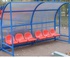 Скамейка для запасных игроков и судей на 6 мест Размеры Длина - 3050 мм Ширина (глубина) - 1000 мм Высота - 2000 мм . Сидения - из древесины хвойных пород или пластиковые кресла со спинкой Обшит оргстеклом или ячеистым поликарбонатом с ультрафиолетовой защитой