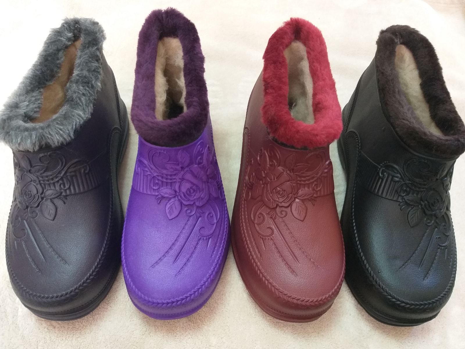 Купить качественные женские галоши на меху по оптовой цене от производителя можно в нашем интернет-магазине Обувь-ТИСМЕЛ . Минимальный заказ - 8 пар Размерный ряд : 3-42 Размеры : 38/39 - 2 39/40 - 2 40/41 - 2 41/42 - 2 Цвет : черный, темно-синий, фиолетовый, бордовый, бирюзовый