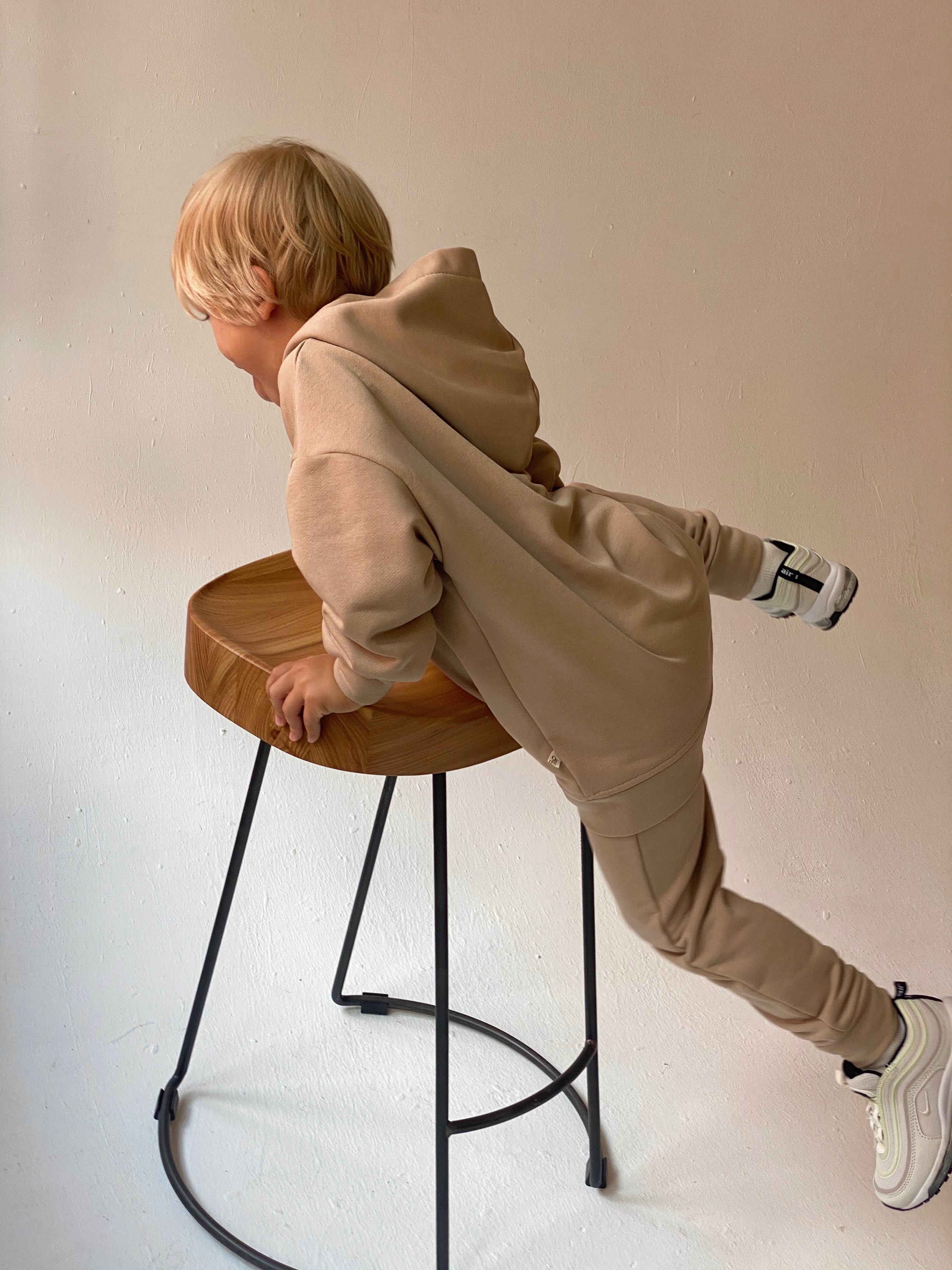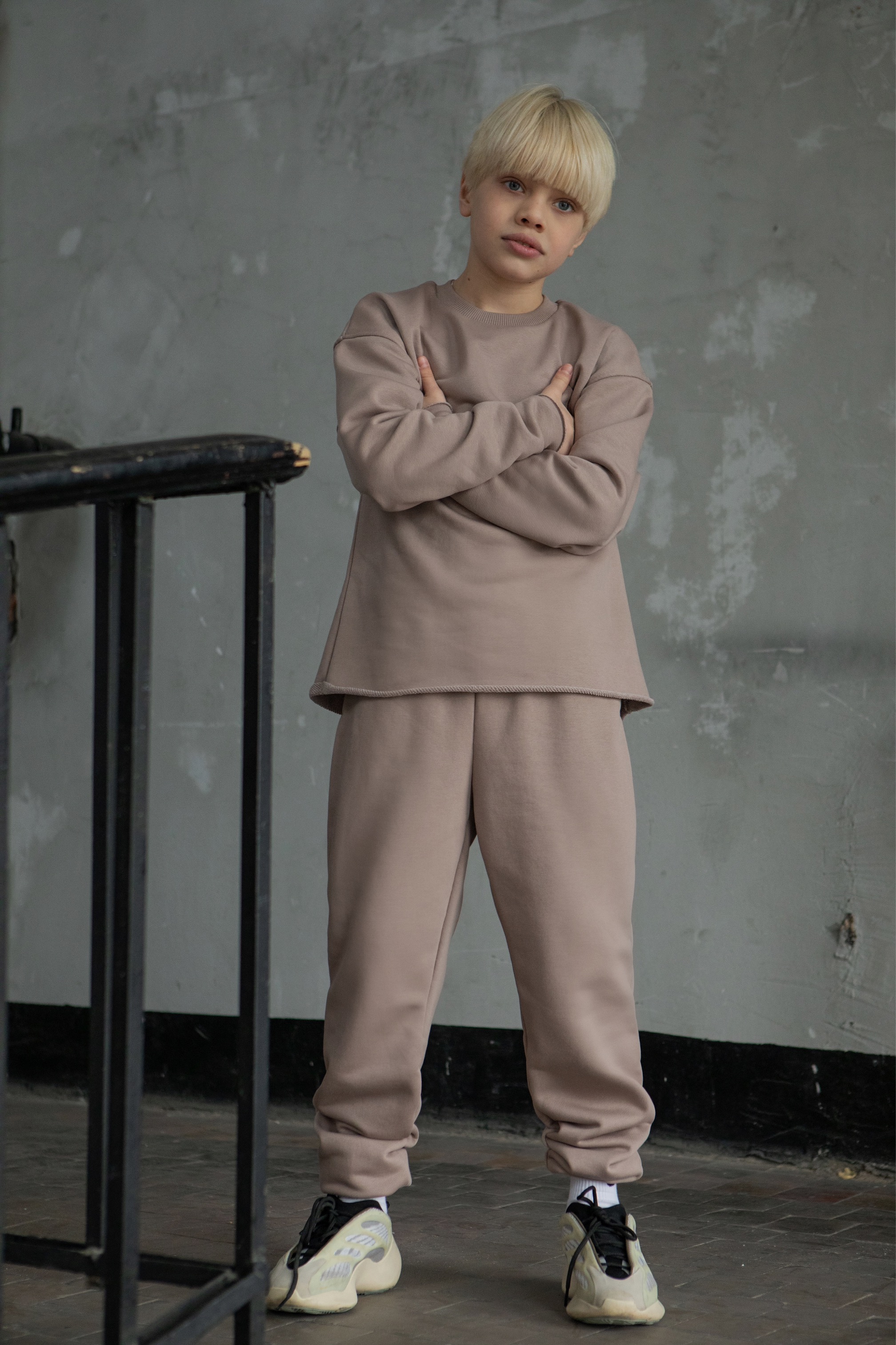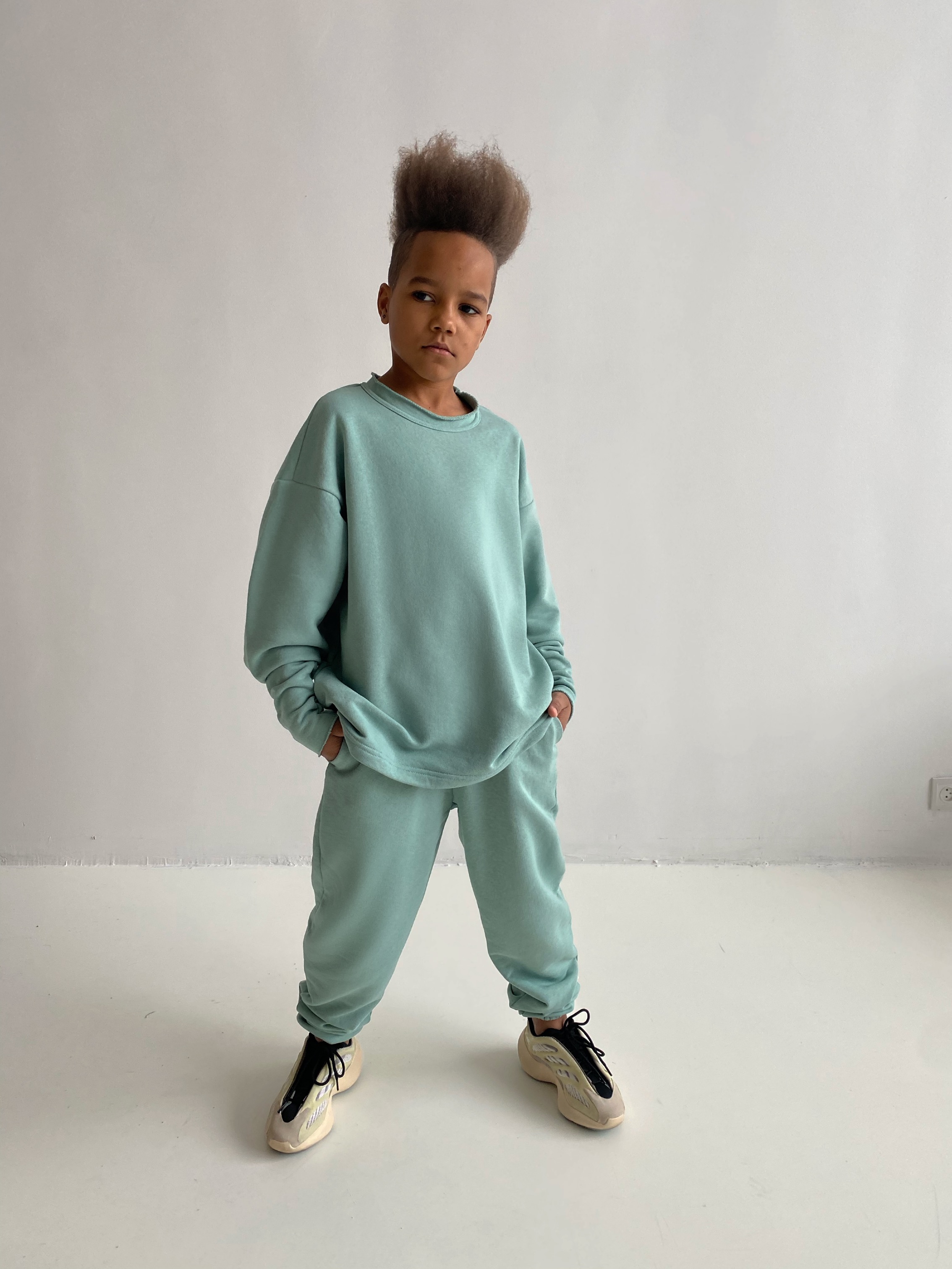 The style of our clothes is minimalism and oversized. Beauty is in simplicity. Spectacular costume. The basic model of the suit. The set consists of an elongated sweatshirt, trousers and a kashkors cap. Dense jersey of the highest quality - "singing". Does not stretch or shrink when washing and wearing. Not childishly stylish model.