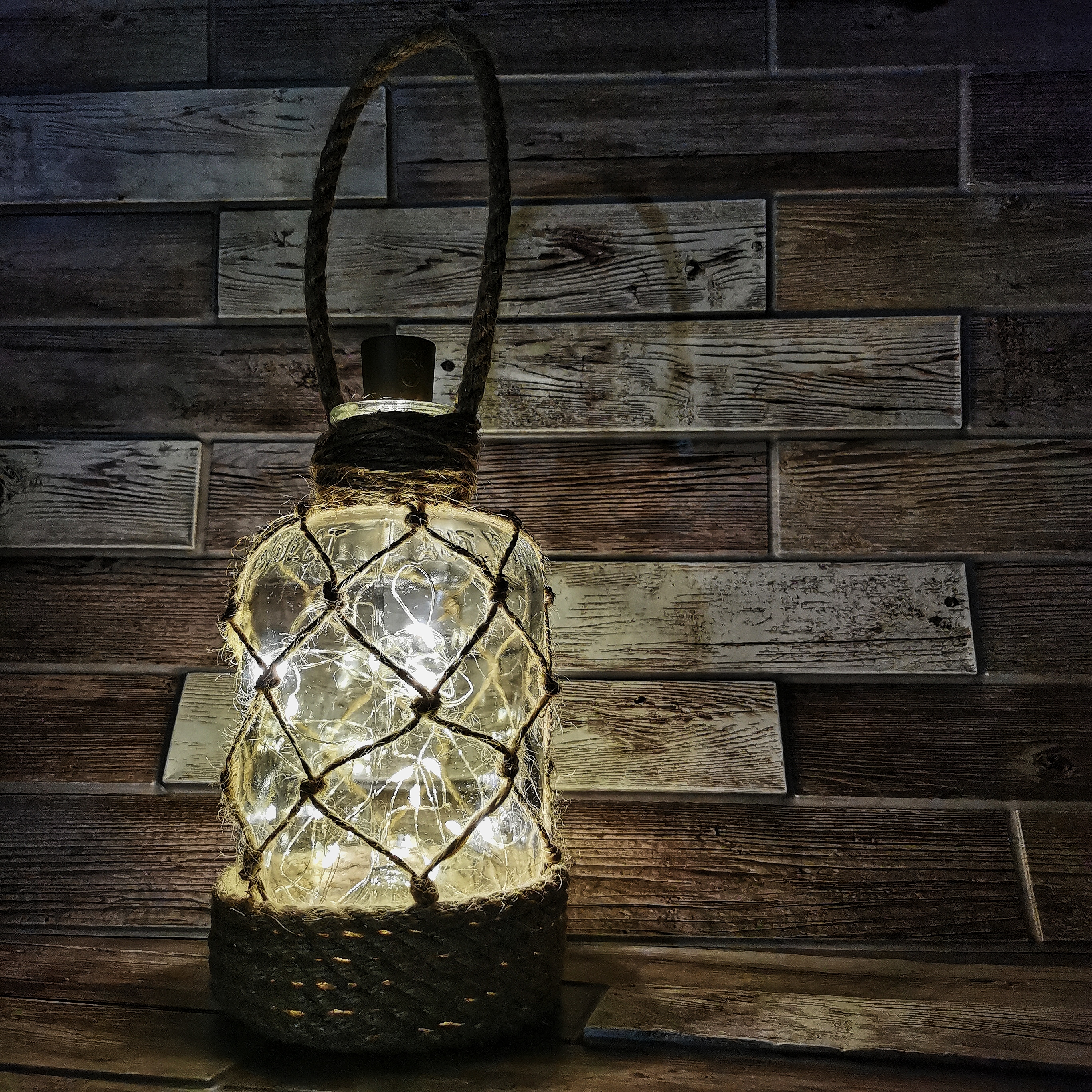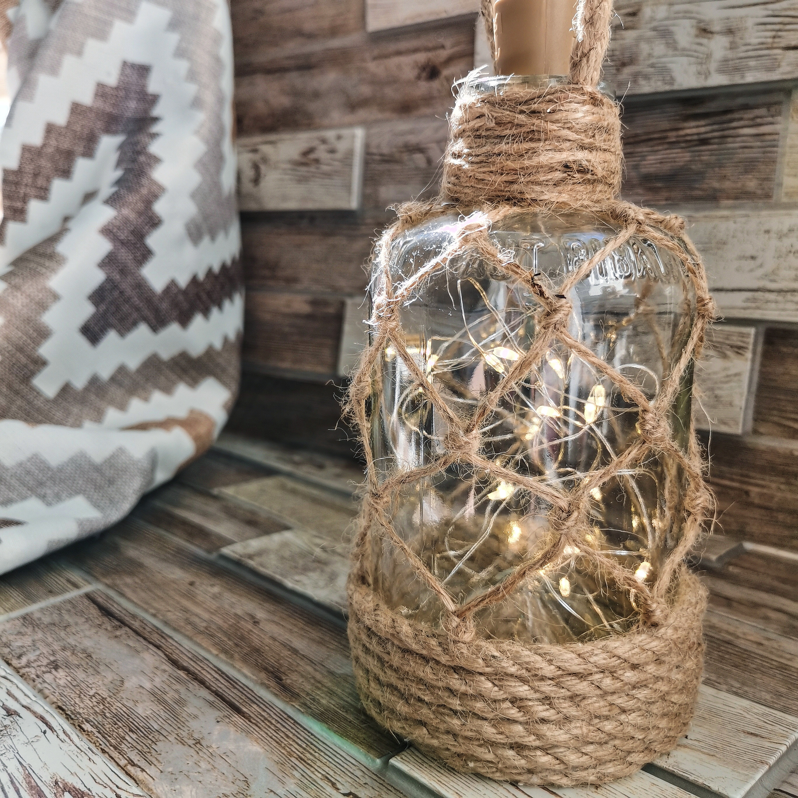 Здравствуйте! Мастерская по изготовлению джутовых изделий предлагает интерьерные светильники, работают от батареек.