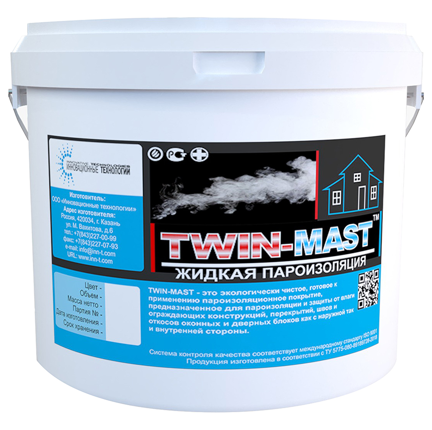 Пароизоляционная мастика TWIN-MAST — это мастика, созданная на базе трехмерно структурированных полимеров, неорганических инертных наполнителей, целевых добавок и пигментов. Компоненты, входящие в состав TWIN-MAST, образуют трехмерную полимерную матрицу, отличительной особенностью которой является ее ветвистое молекулярное строение. Благодаря такому строению, увеличивается длительность пути, который необходимо пройти водяному пару для преодоления толщины пленки.
