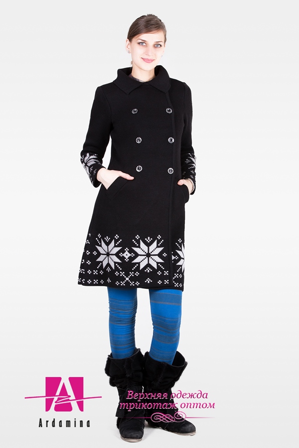 Size: 44-52 Color options: Additional photos: Description: Elegant knitted coat in strict tones. Composition : Wool 30%. Acrylic 70%