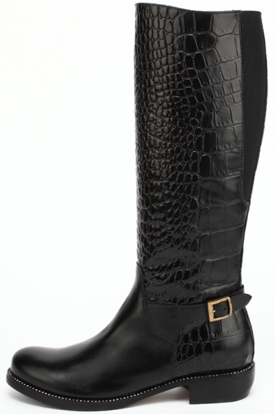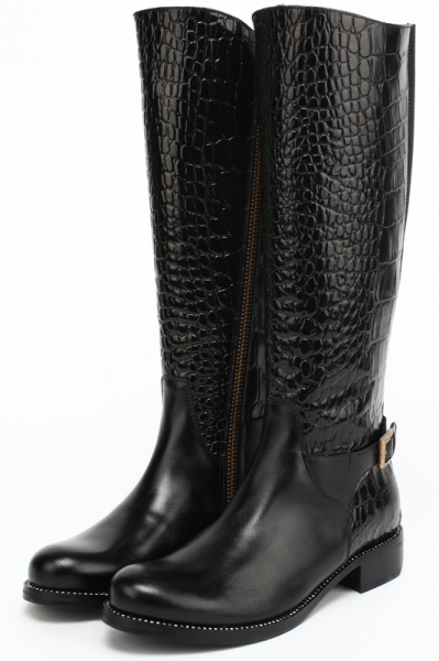 Черные сапоги под крокодила, стразы, медная пряжка.осень