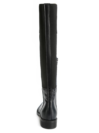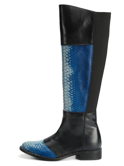 深蓝色长筒靴搭配天然python s147