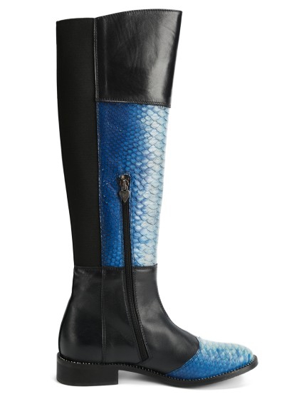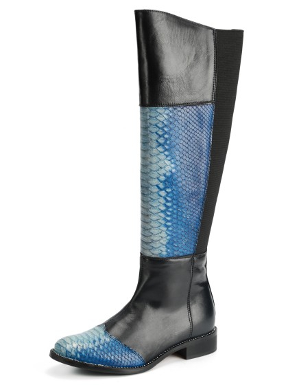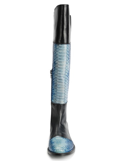 深蓝色长筒靴搭配天然python s147 - 7778