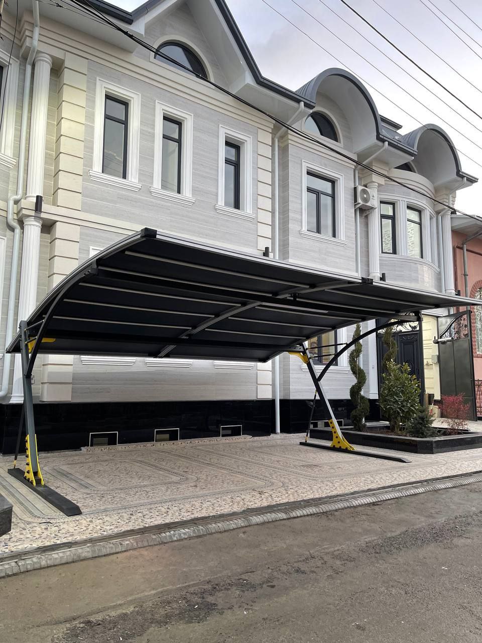 遮阳篷 材质:土耳其遮阳篷 850 克 紧固件:铝 柱和梁:80 毫米 x 120 毫米 |无缝管:强大而庞大。制造于。弯管机 颜色:可用于任何设计的各种颜色 尺寸:5.65 x 5.25 另外:可根据要求提供定制尺寸
