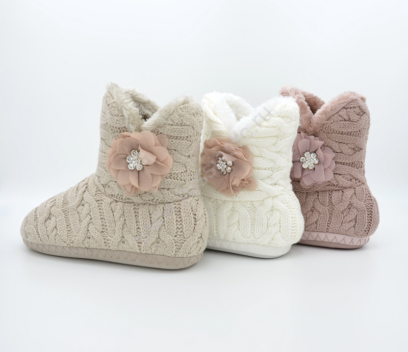与雪纺花朵Ugg靴子L-312 - 6723