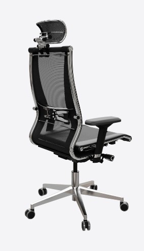 THE UPPER PART OF THE CHAIR Type of chair Samurai Chair size L2 (Width: 510mm. Height: 710mm.) Backrest model Pilot F Type of backrest frame cover Chrome Seat size L (Width: 510mm) Seat type Comfortable stretch seat on a chrome-plated steel frame Seat model PF Armrest model 4D Armrest trim Black Type of headrest 13.03 Headrest upholstery material Black 3D Adjustment LOWER PART OF THE CHAIR Swing mechanism Swing synchromechanism, multiblock with slider (M26) Five beams Cast aluminum, rectangular, d700mm (B32) Gas lift 120/90 chrome Videos Anti-rollback, polyamide with PU rim, d60mm (W03)