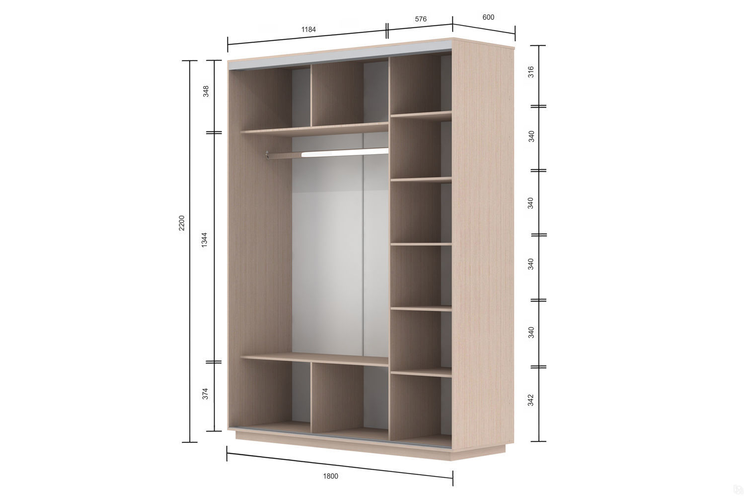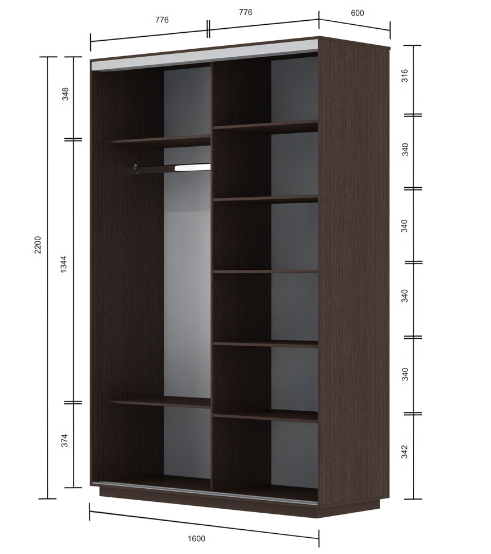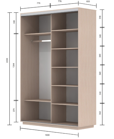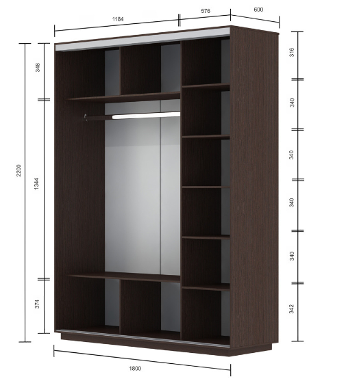 Slide sliding wardrobe will make it possible to easily place a small family's wardrobe in it. The furniture has several compartments: in one there are five wide shelves on which you can store bed linen, towels, home textiles, the second is equipped with a bar for hangers and shelves - below and above. Sliding doors do not require additional space around the furniture, which is necessary for opening them. There is a choice of colors (white, milk oak, wenge tsavo, sonoma oak ), size and presence of mirrors. The series includes 30 models. For a complete catalog please contact us.