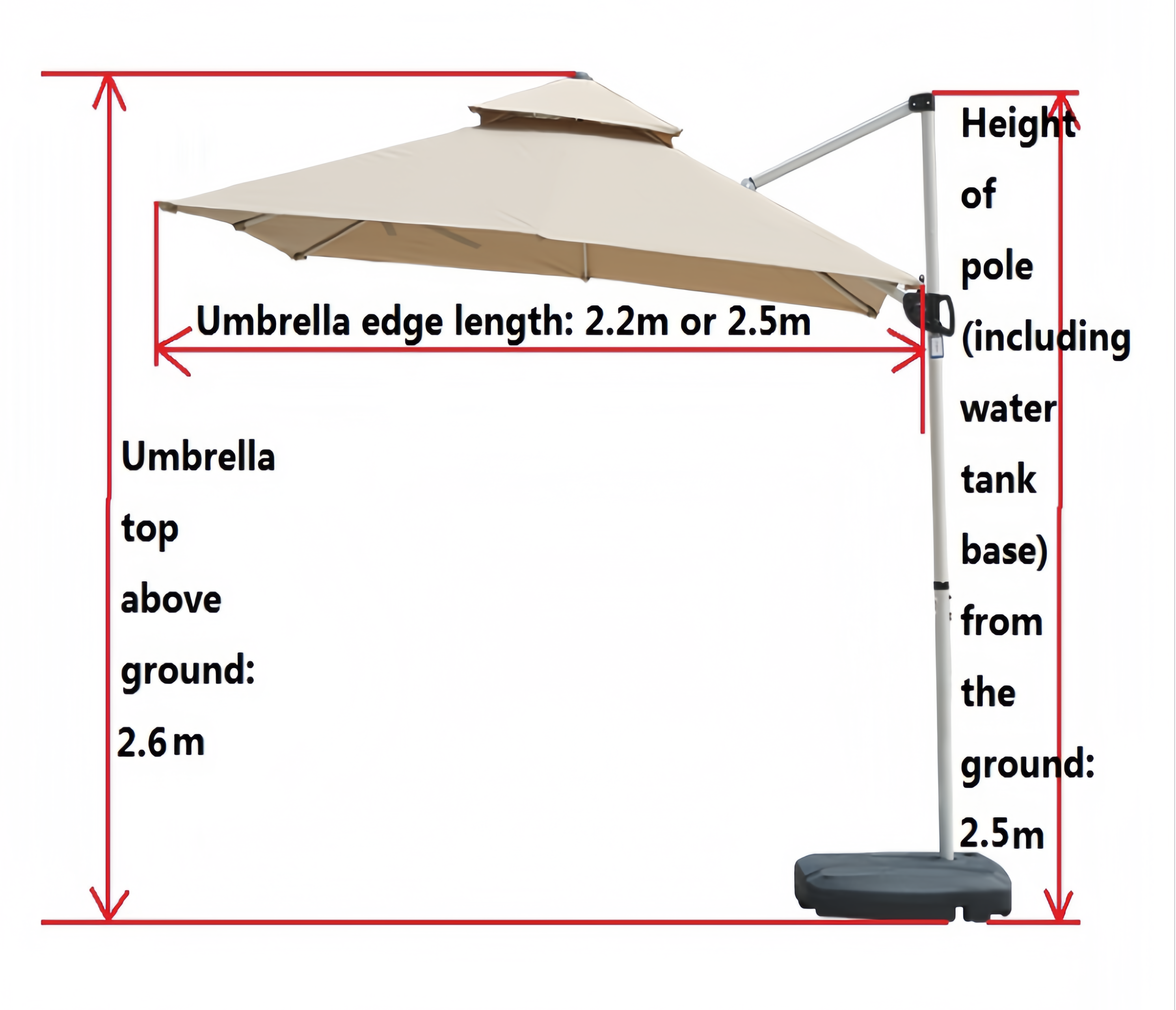 Offset Cantilever Umbrella – 3m Double-Tier, Aluminum Frame, Water/Sand Base Ready – Wholesale - 108350