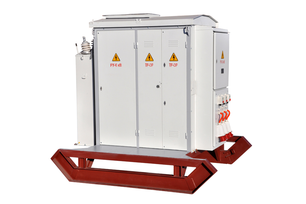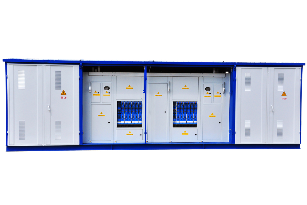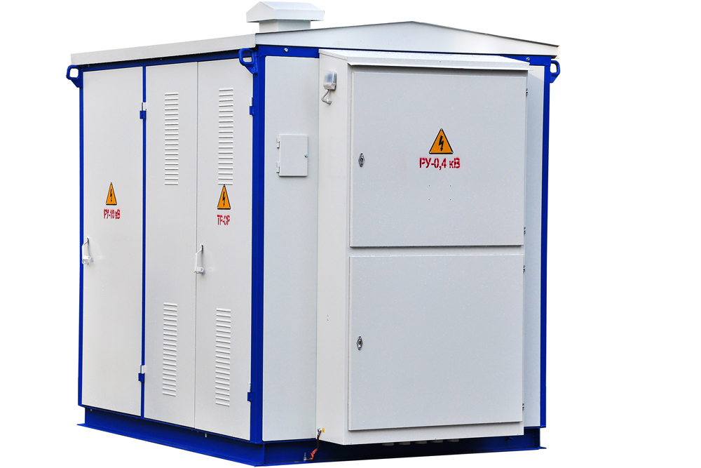 Transformer substations complete dead-end - KTP-2 power 25-2500 kVA, voltage HV 6 or 10 kV and LV voltage 0.4 kV intended for reception, transformation and distribution electrical energy three-phase alternating current with a frequency of 50 Hz in systems with grounded neutral transformer on the low side voltage. KTP-2 are intended for power supply of agricultural consumers, individual settlements and small industrial facilities in areas with a temperate climate (from -45 ° C to + 40 ° C). KTP-2 is installed on the simplest concrete site. Type of climatic modification U1 in accordance with GOST15150. Normal operation of the KTP is ensured under the following conditions: 1. Height above sea level - no more than 1000 m; 2. Environment - non-explosive, not containing conductive dust, corrosive gases and vapors in concentrations that reduce the parameters of the KTP within unacceptable limits; 3. Wind speed up to 36 m / s (wind pressure speed up to 800 Pa); 4. Type of atmosphere - II in accordance with GOST 15150. High-voltage input - air or cable, outgoing line branches - air or cable. Passage KTP-2 are manufactured as one-transformer and two-transformer (with sectioning for high and low voltage). Circuit breakers are installed on the LV side. Their number and rated current are shown in the table. The package of delivery of the KTP includes UVN (air inlet) and LVDN cabinets, a power transformer, an outdoor disconnector RLNDz-10/630 (on request). On request, the KTP can provide street lighting lines, switched on automatically by the signal of the built-in relay and by installations for reactive power compensation.