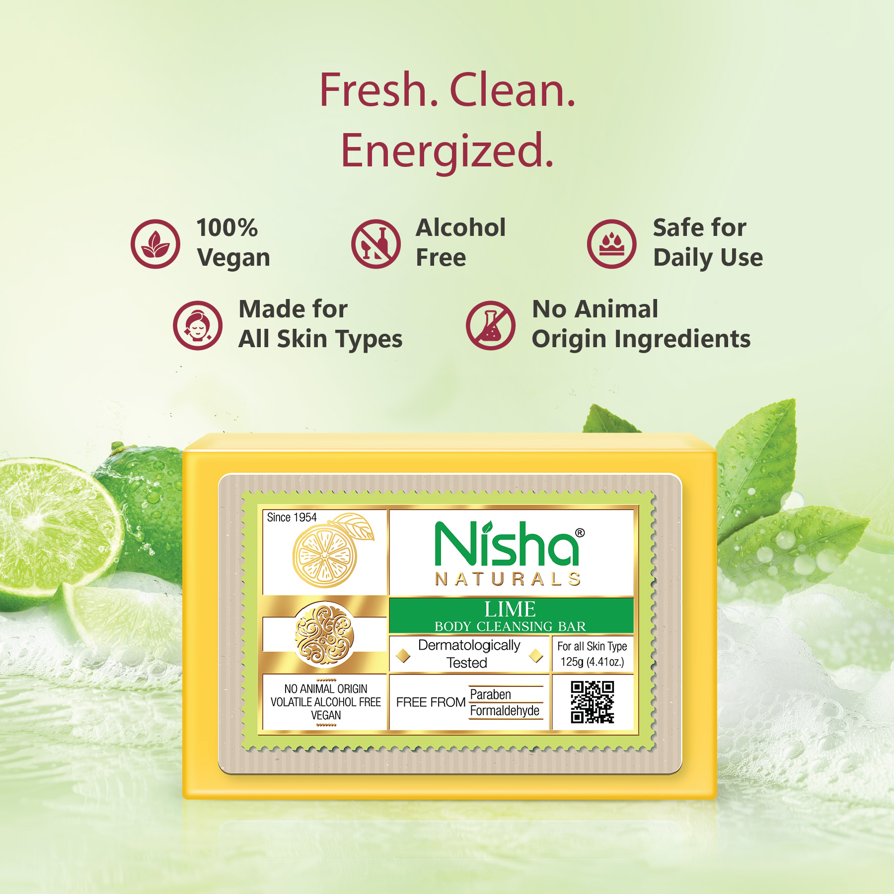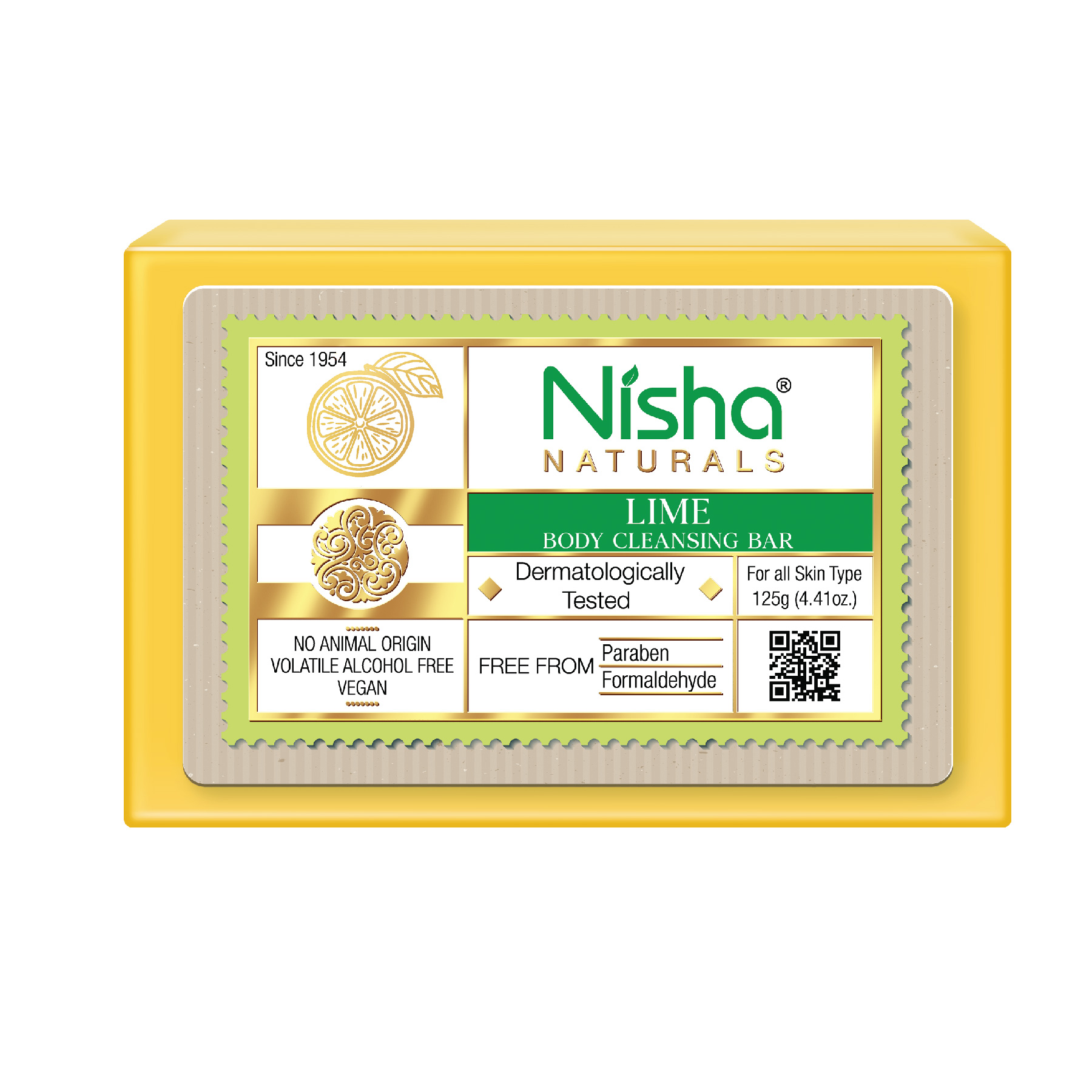 Nisha Lime Body Cleansing Soap Bar 125g – Paraben Free, Vegan, Gentle Cleanse for Soft & Supple Skin, Suitable for All Skin Types, Men & Women - 107794