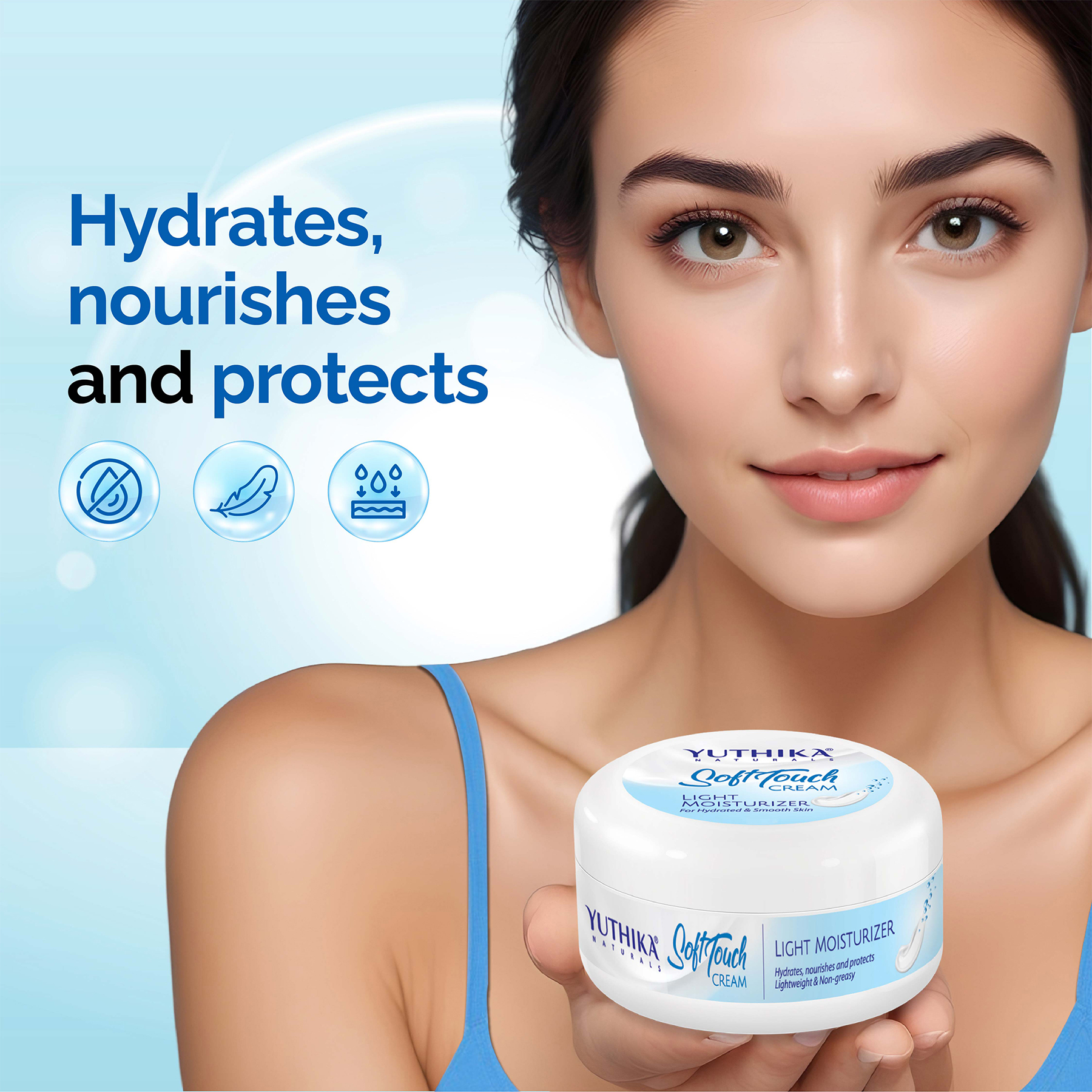Yuthika Light Moisturizer Cream | Non-Sticky & Deep Nourishment | For Face, Hand & Body | Glycerin, Shea Butter & Vitamin E (500g) - 107872