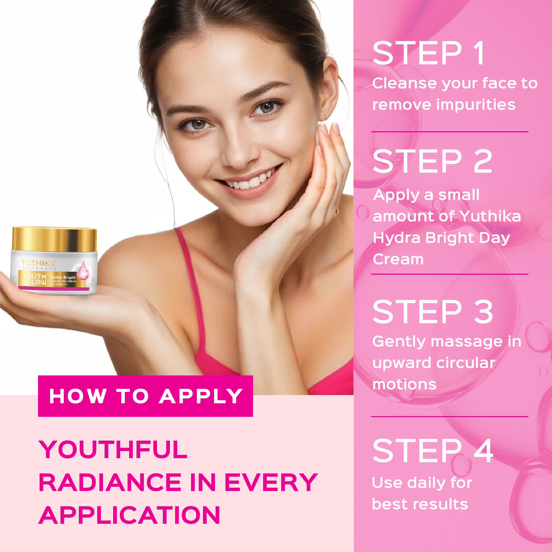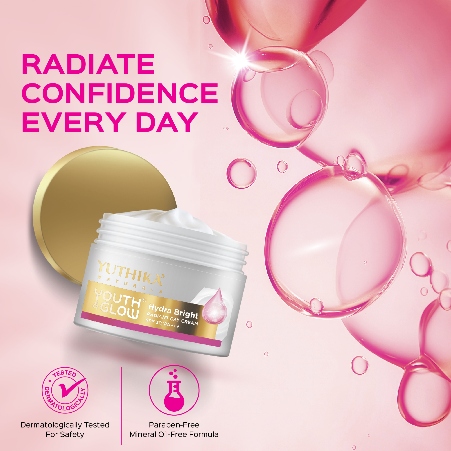 Yuthika Youth & Glow Day Cream SPF30/PA+++ for Women, Oil-Free, Reduces Dark Spots & Wrinkles (50g) - 107839