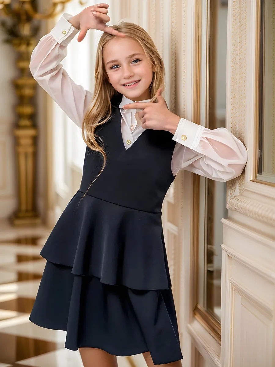 Школьный сарафан для девочек — это базовый и одновременно нарядный элемент гардероба, который идеально подойдёт как для повседневного ношения, так и для особых мероприятий: 1 сентября, выпускных и школьных выступлений. Модель выполнена из мягкой, прочной ткани пикачу — она не мнётся, не скатывается, устойчива к деформации и проста в уходе. Элегантный фасон с акцентом на талию. Юбка-полусолнце с двумя воланами для свободы движения. Универсальный дизайн: подходит для школьной формы и праздничных образов. Отлично сочетается с блузками, водолазками, рубашками. Широкий размерный ряд — подходит на подростков. Материал: ткань пикачу (полиэстер/вискоза). Цвета: классические школьные оттенки. Размеры: 122–164.
