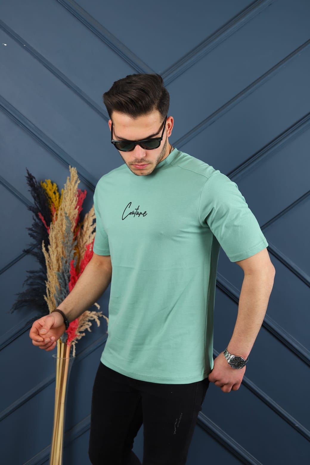 Мужская футболка полу оверсайз - 93367