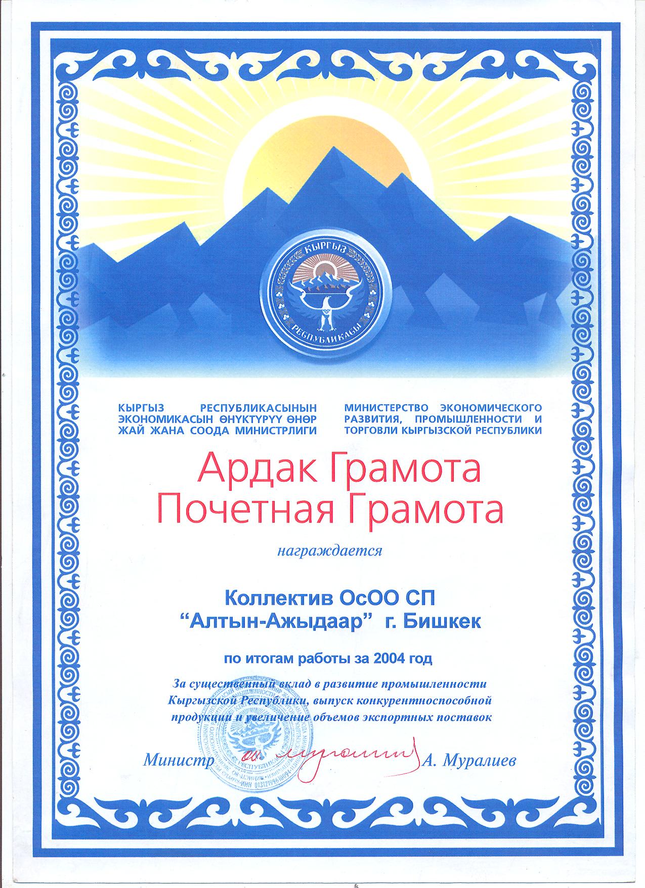 ОсОО «Алтын-Ажыдаар» — это динамично развивающееся компания с современной технологией производства, высоким качеством продукции и высокопрофессиональным коллективом. Компания создана в 1995 году и занимается производством упаковок из гофрокартона, а так же литой бугорчатой тары, мелованного картона и изготовлением красочной упаковки из микрогофры и хром-эрзаца. Ежегодно наращивая объемы производства, и осваивая новые виды продукции, компания на сегодняшний день является одной из ведущих в своей области на рынке Кыргызской Республики. Кроме того, ОсОО «Алтын-Ажыдаар» постоянно увеличивает свой экспортный потенциал, привлекая новых потребителей в Европе, России и Средней Азии. В настоящее время в компании работает около 500 человек. Общая площадь производства 18000м². В 2005 году была успешно запущена бумагоделательная машина. Мощность производства бумаги составляет 600 тонн в месяц, а так же производство гофрокартона 1,5млн. м² в месяц. Одной из приоритетных задач нашей компании является индивидуальный подход к каждому клиенту. Ассортимент нашей продукции способен удовлетворить требованиям любой промышленной отрасли. Нам приходится искать неординарные пути не только для привлечения новых клиентов, но и для того, что бы укреплять уже состоявшиеся деловые связи. Специалисты компании дадут Вам исчерпывающие рекомендации относительно любого вопроса в подборе тары и упаковки. В нашей компании имеется свой транспортный отдел, автомобильный парк, который позволяет осуществить доставку, как в пределах республики, так и в соседние государства.