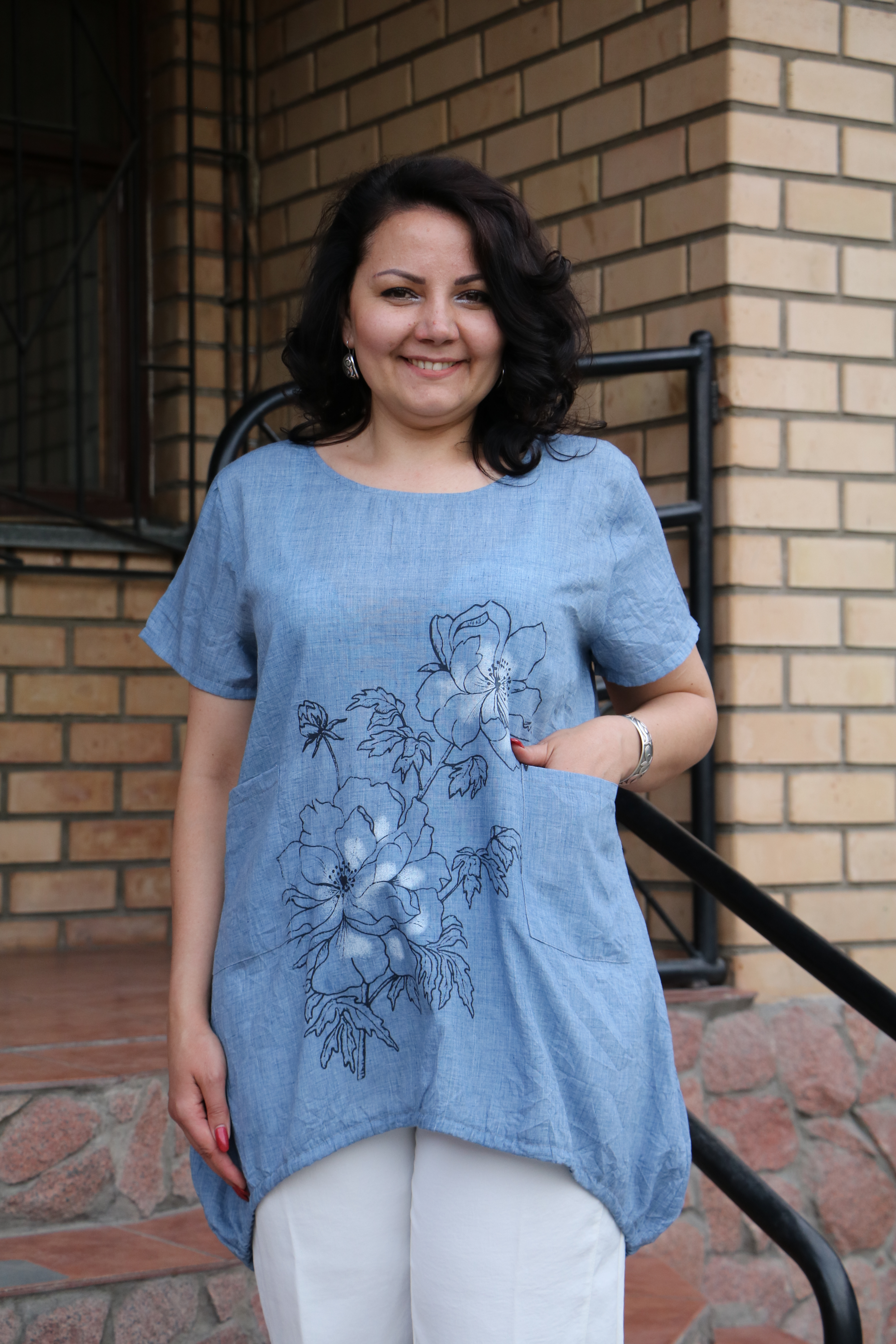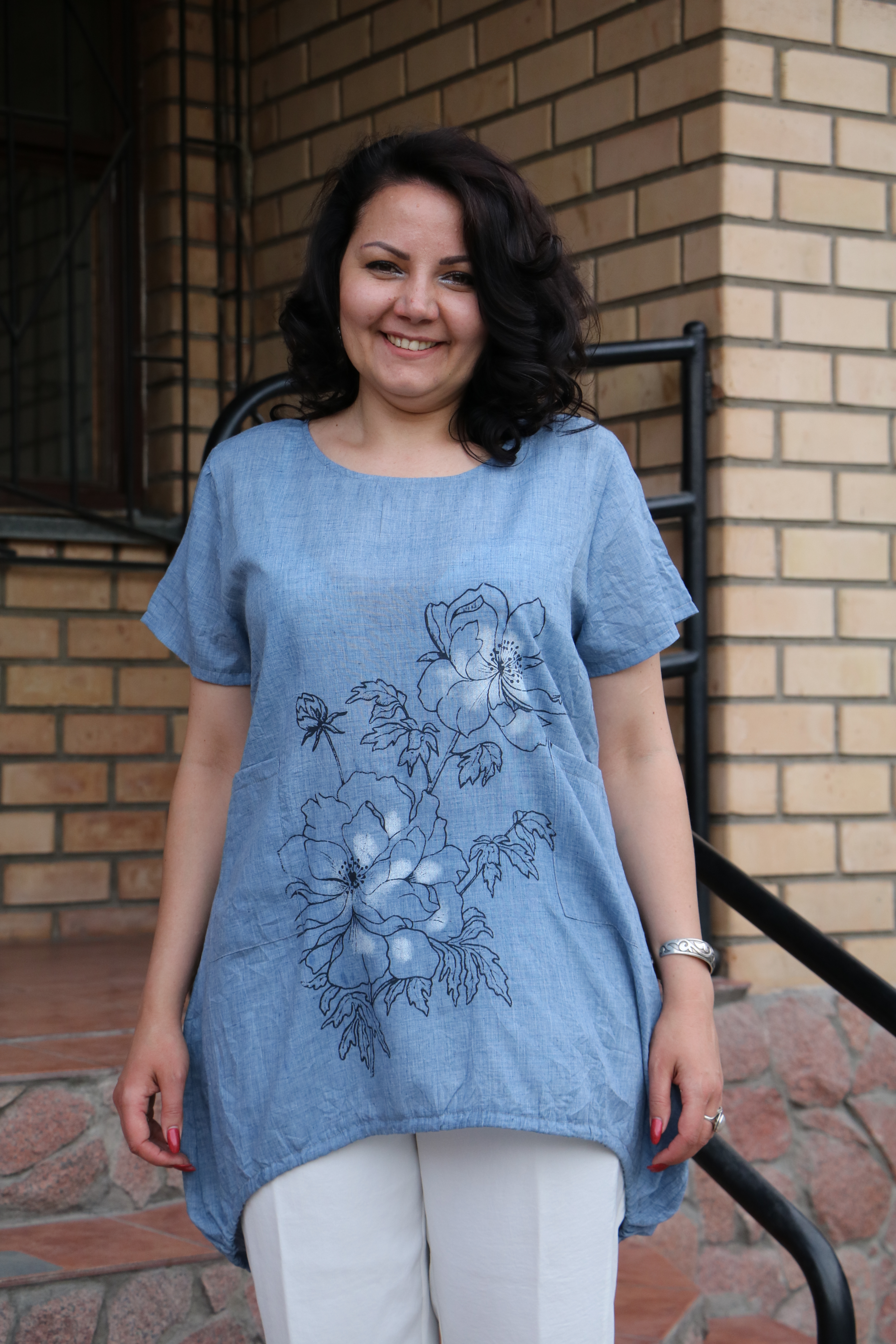 Размер RU: 52-54-56Материал: марлевка с принтом со шнурком,удлиненное сзадиЦвет: белый, джинсовый, темно-синий,белый, кофейный, арбузный