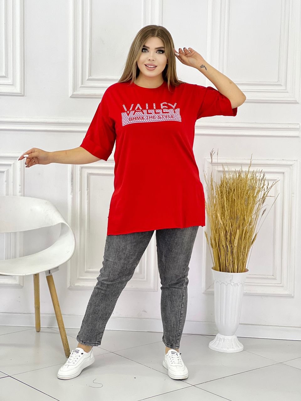 Футболка женская оверсайз бренда Asema style подходит всем типам фигур. Свободная посадка, прямой крой, спущенное плечо, длинные рукава, удобно носить навыпуск или заправлять. Наша майка идеально подойдет для беременных женщин. Хлопковая базовая оверсайз футболка отлично подойдёт как для создания повседневных образов, так и для образов в деловом и спортивном стилях. Вы можете использовать нашу стильную унисекс футболку не только в качестве повседневной одежды, но и в качестве уютной домашней одежды. Очень разнообразная цветовая палитра включает в себя множество оттенков, от нежных и пастельных до ярких и дерзких.  Свободная футболка больших размеров разработана для ценителей качественных объемных вещей. Длина -78 см Ширина -58 см Длина рукава от горловины -40 см
