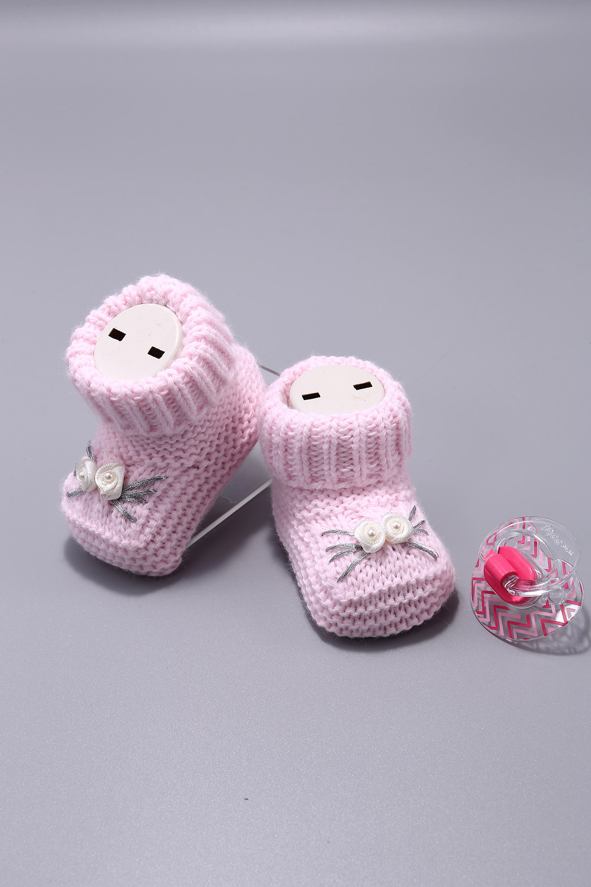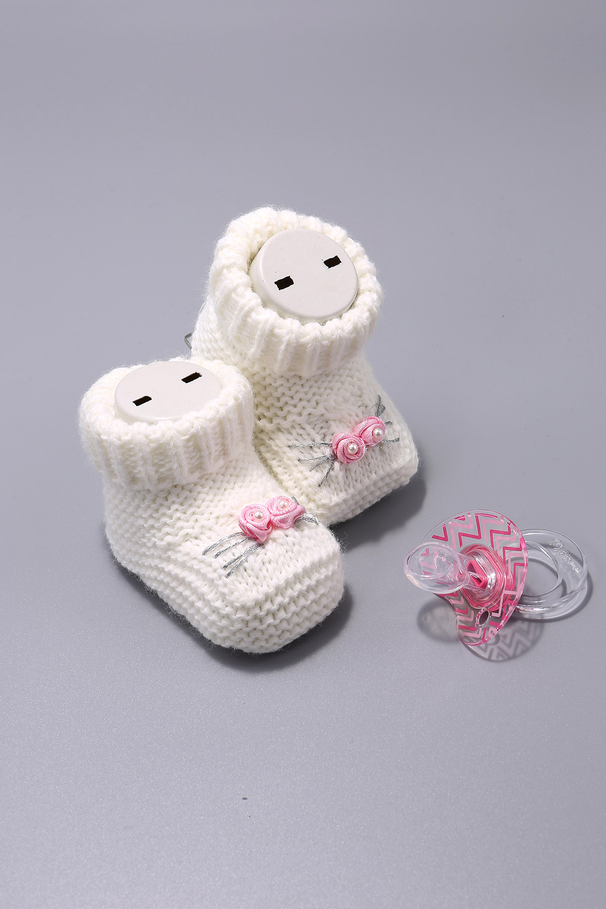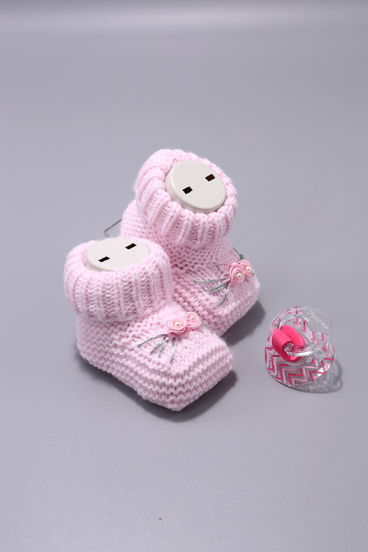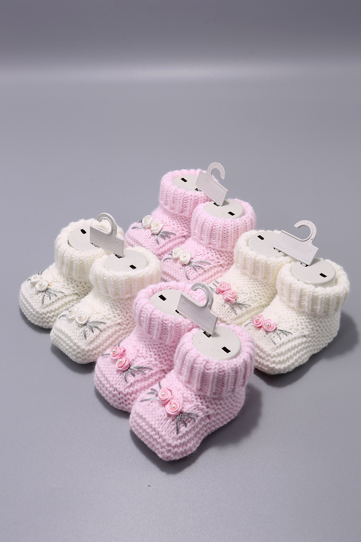 Вязаные изделия Блеск 2 розы Вышитые волосы Вязание Пинетки 100% Акрил 06 Месяцев
