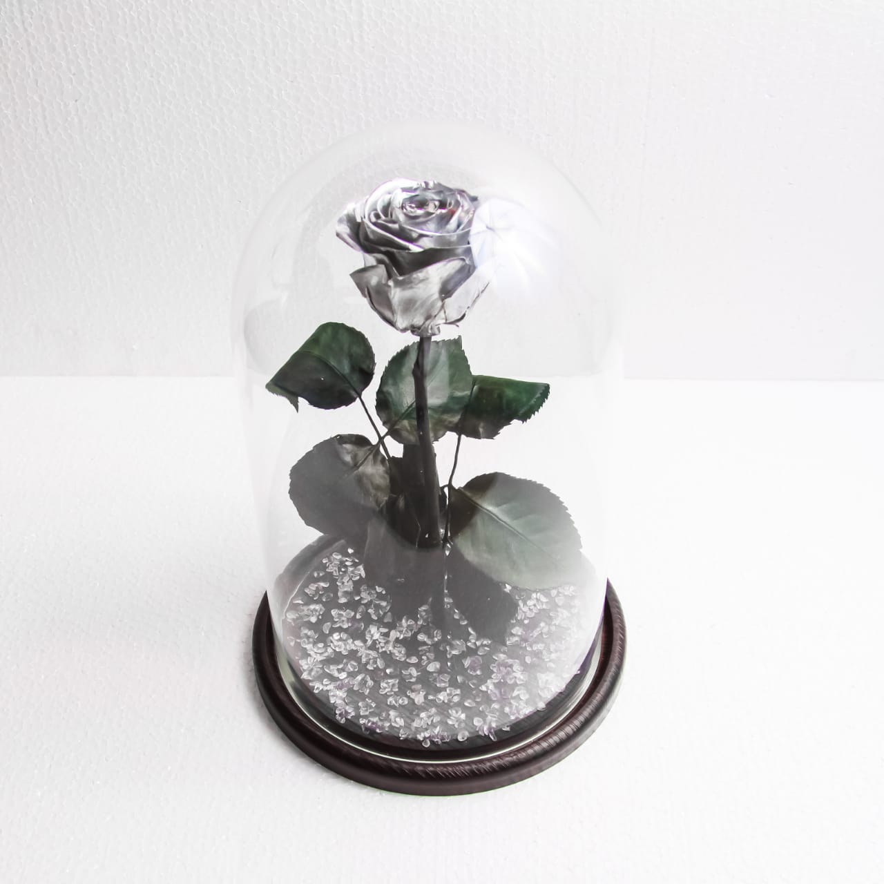 Роза в колбе 28см премиум платиновый