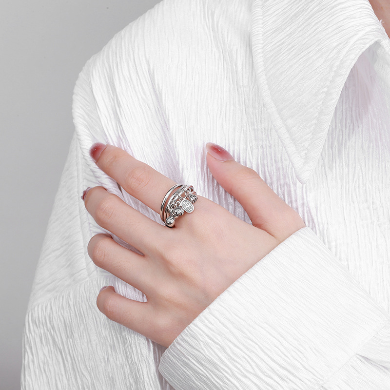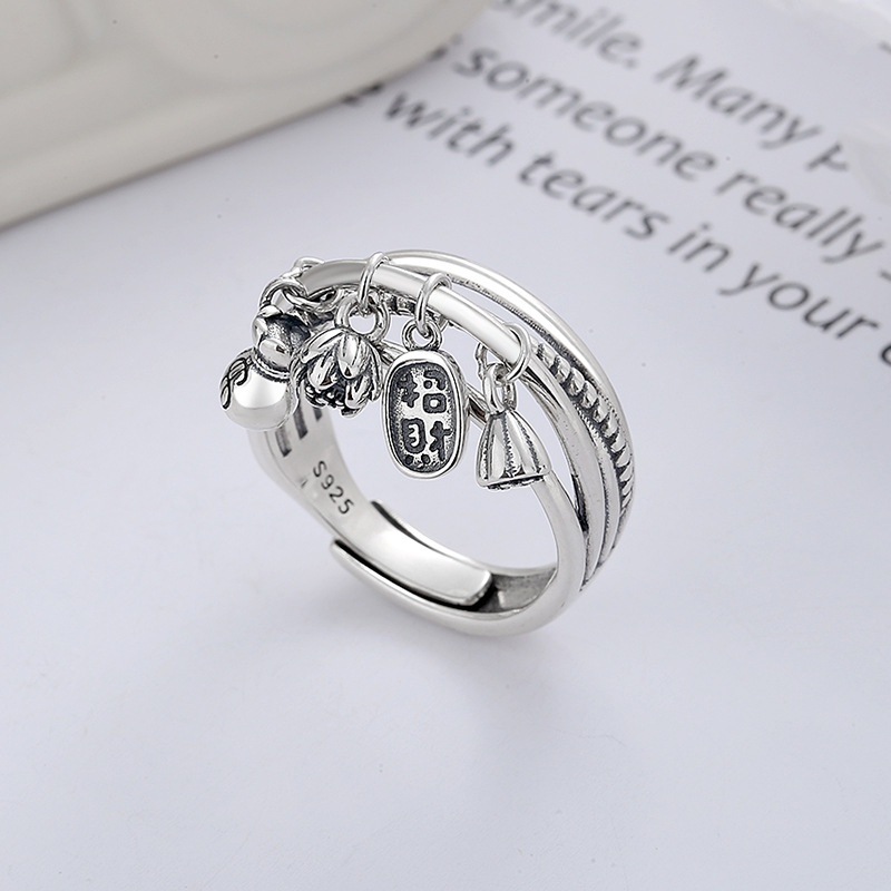 Серебряное кольцо 925 пробы, оригинальный стиль из маленьких кулонов, лотос, литературный, ретро, шар, цветок - 92099
