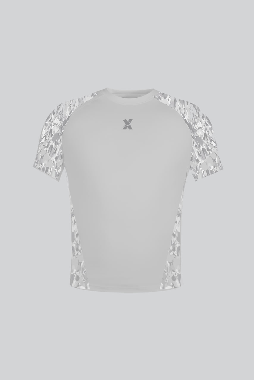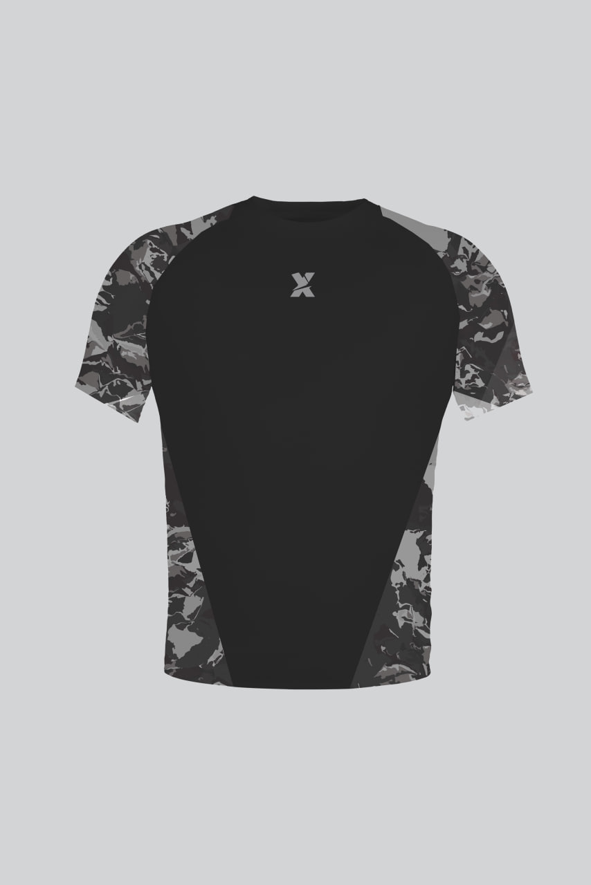 Спортивная футболка из ульрамягкой ткани с хорошей растяжимостью с рисунком камуфляж на ткани, хорошо дышит и отводит влагу.