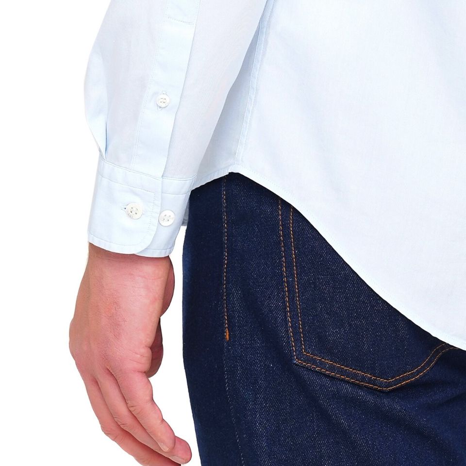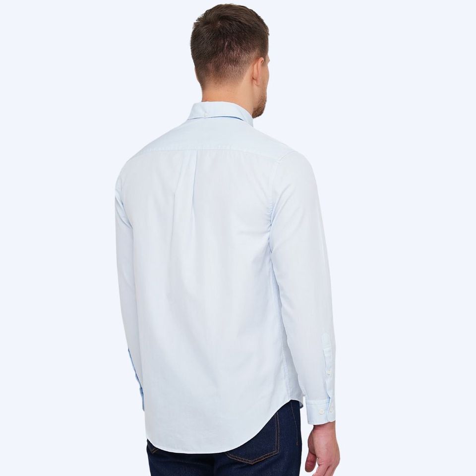 Повседневная, комфортная хлопковая рубашка свободного кроя, которая идеально вам подойдет. В конструкции рубашки учтены биомеханические особенности стал движением рук, теперь подъем рук в вверх, или обхват руками более комфортным и раскрепощенным. Длина рукава стала короче чем в стандартной рубашке свободного кроя, это позволяет избежать лишних складок на рукаве. Пуговицы натуральные, изготовлены из ракушки, изделие постирано с энзимами. Рубашку можно заправить или надеть поверх брюк в зависимости от обстоятельств. Цвет: светло-голубая, голубая полоска Матриеал: 100% Хлопок Размеры: XS-XXL Посадка: Regular Fit Бренд: BARLLY