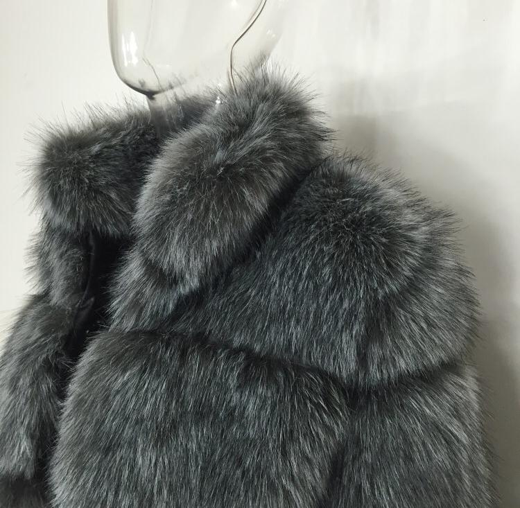 Шуба под песца с воротником-стоечкой (экошуба) - 34721