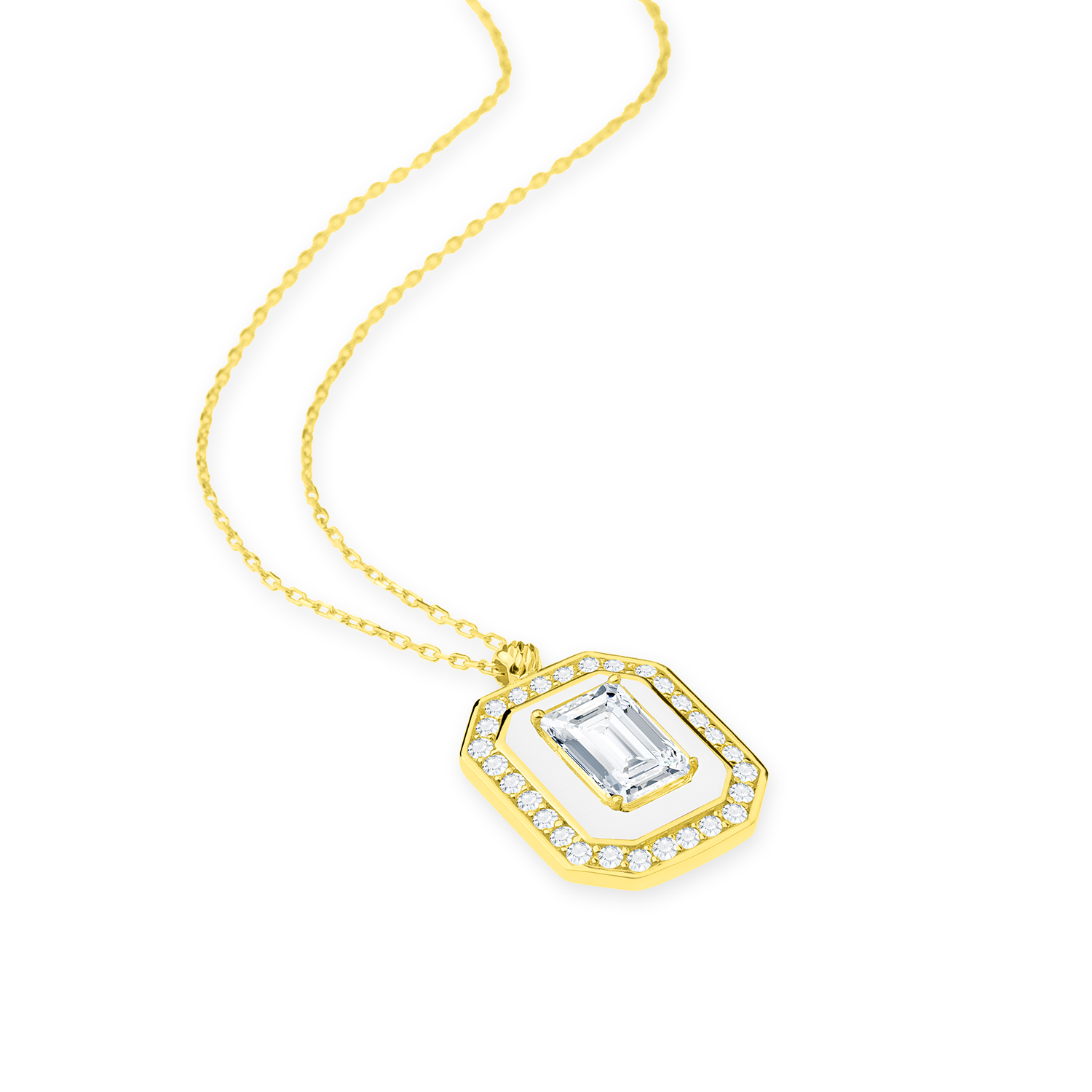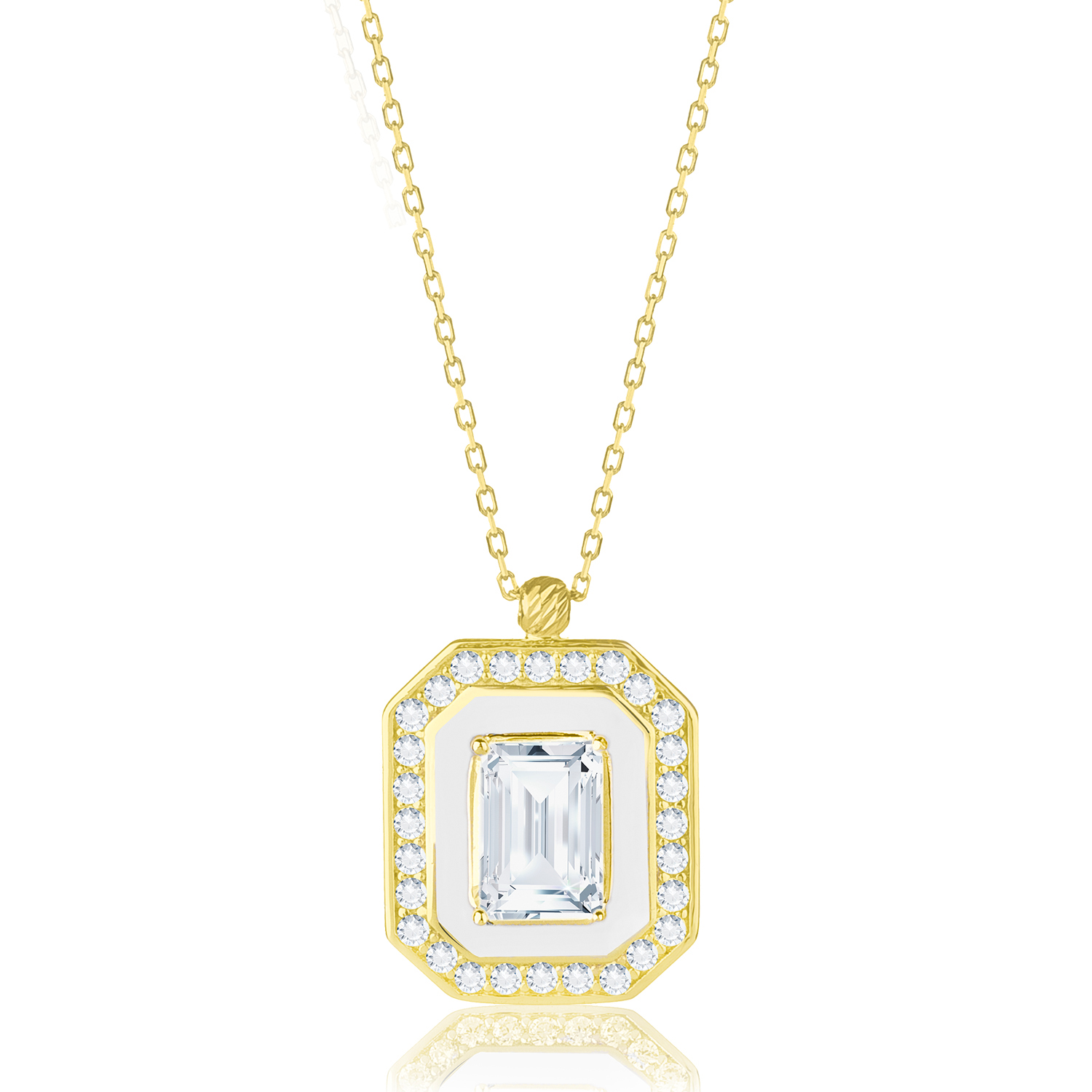 Even & Pétra 14 Ayar Altın Taşlı Beyaz Renk Baget Kolye - 46579