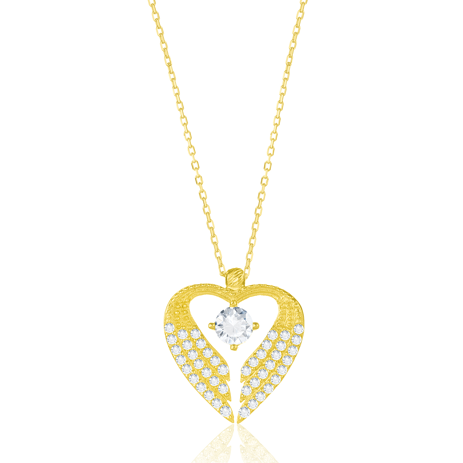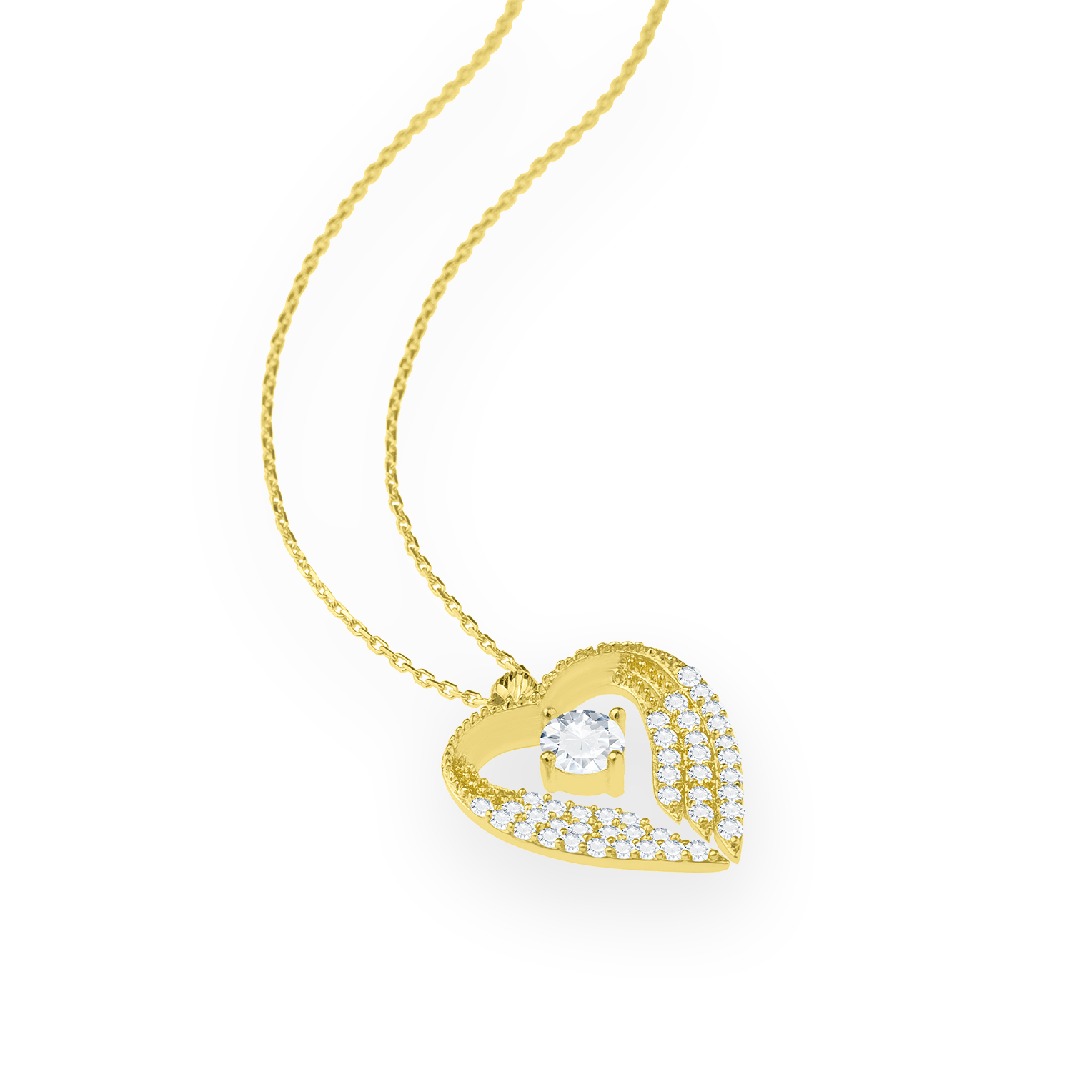 Колье Even & Pétra из 14-каратного золота с одним камнем и крылатым сердцем с крыльями ангела - 46601