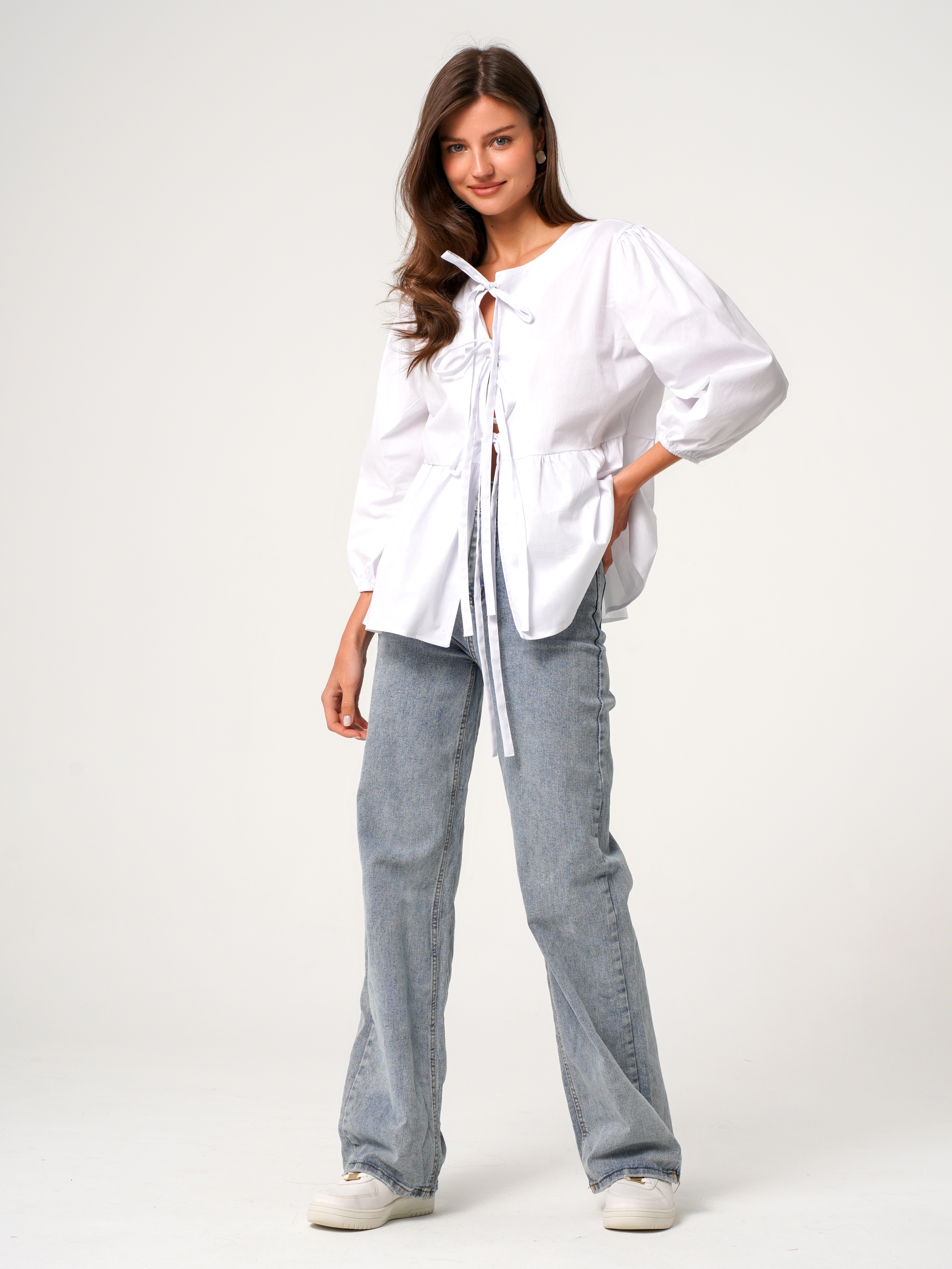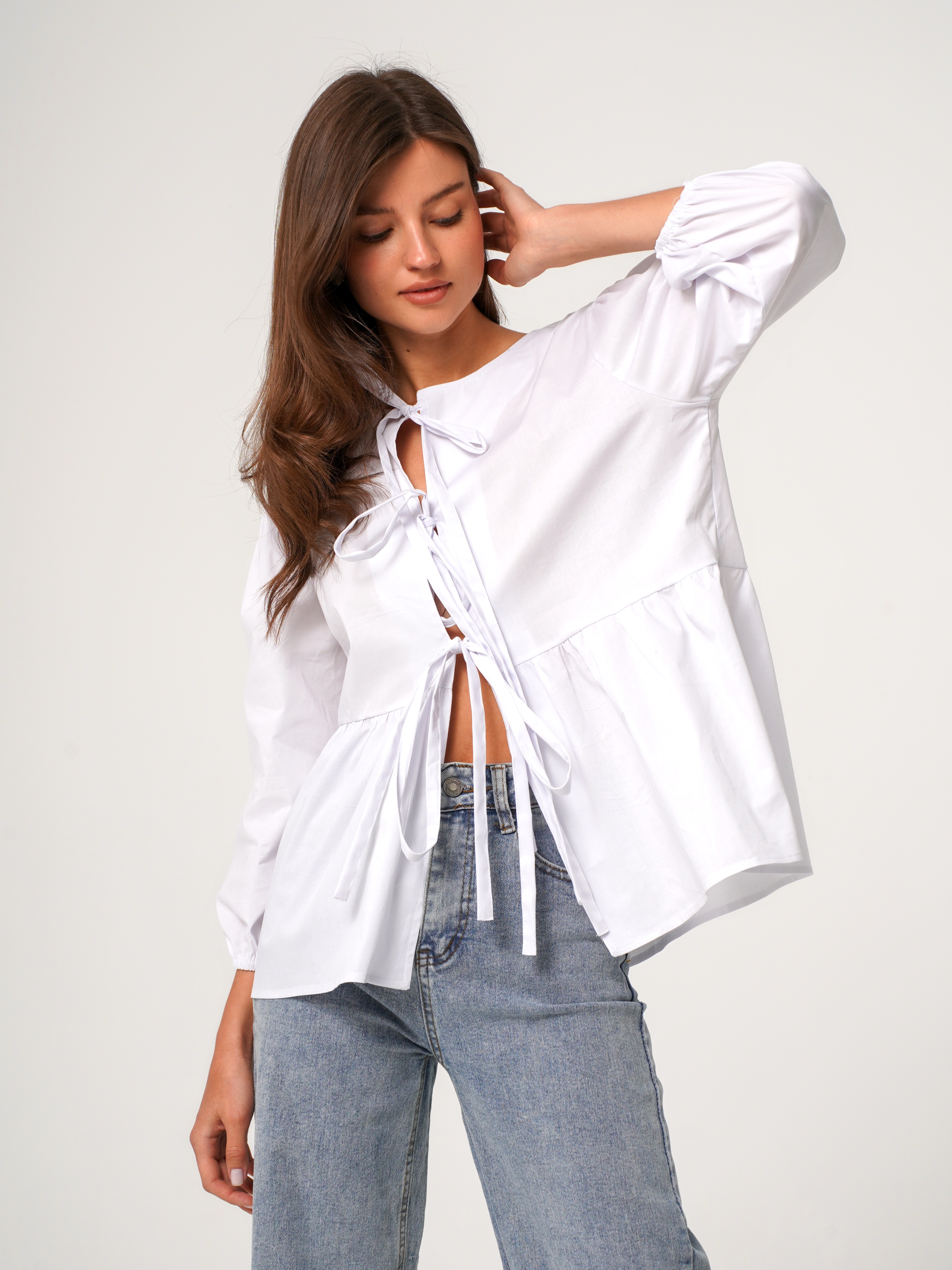 Блузка белая на завяках
