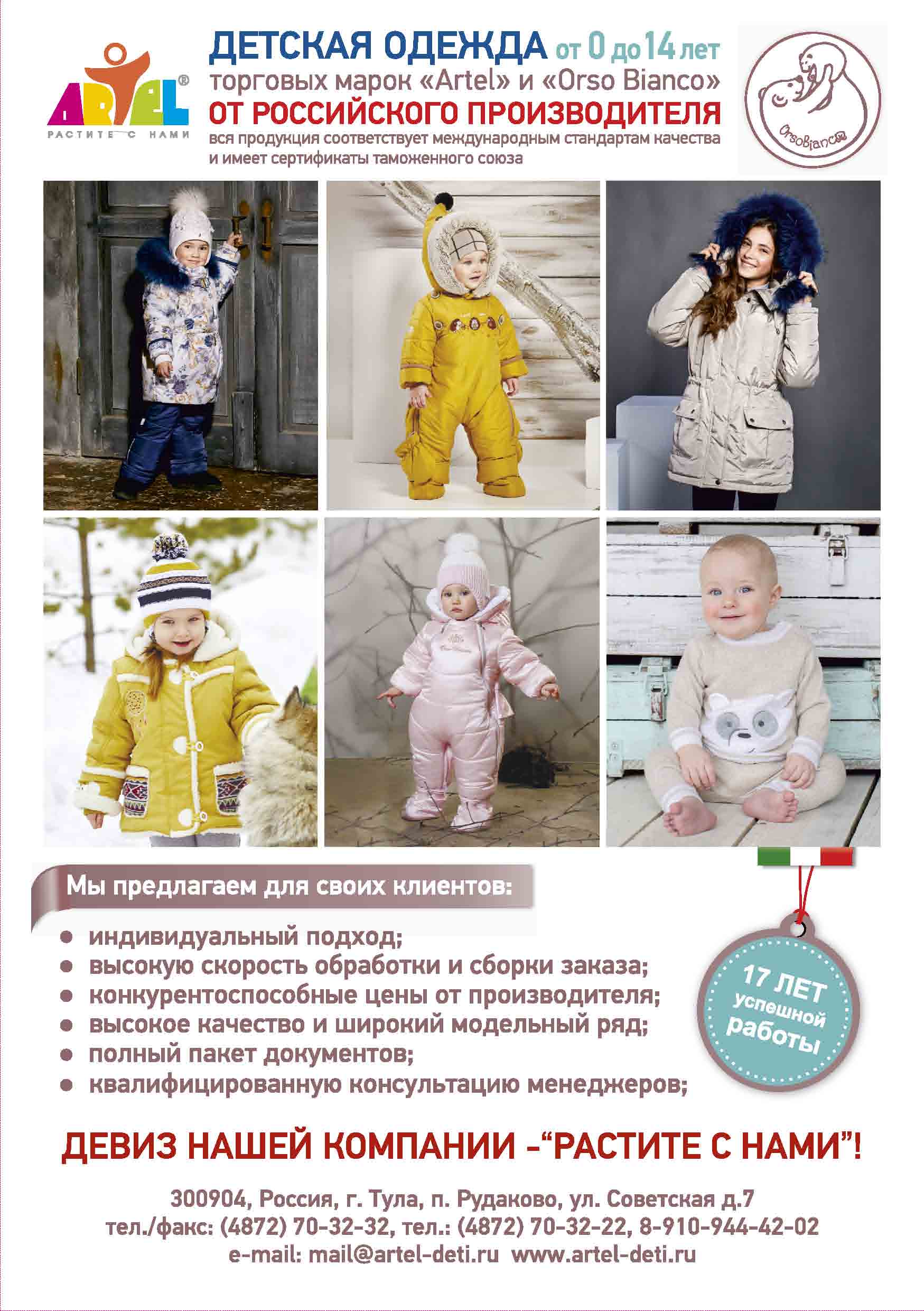 Фабрика детской одежды «Артель» - российский производитель из г. Тула. Производство и продажа оптом. В каталоге верхняя одежда для детей, головные уборы. Купить оптом можно по запросу.
