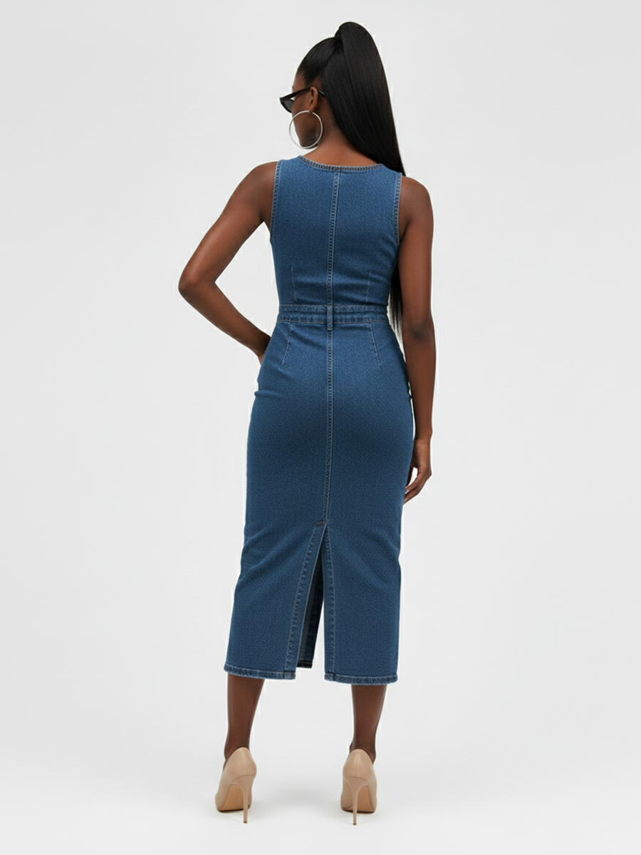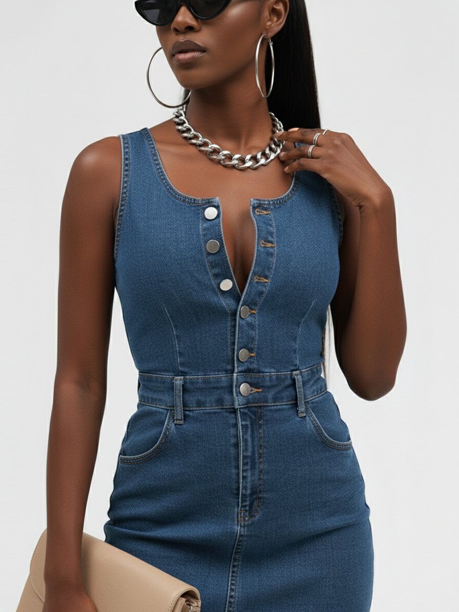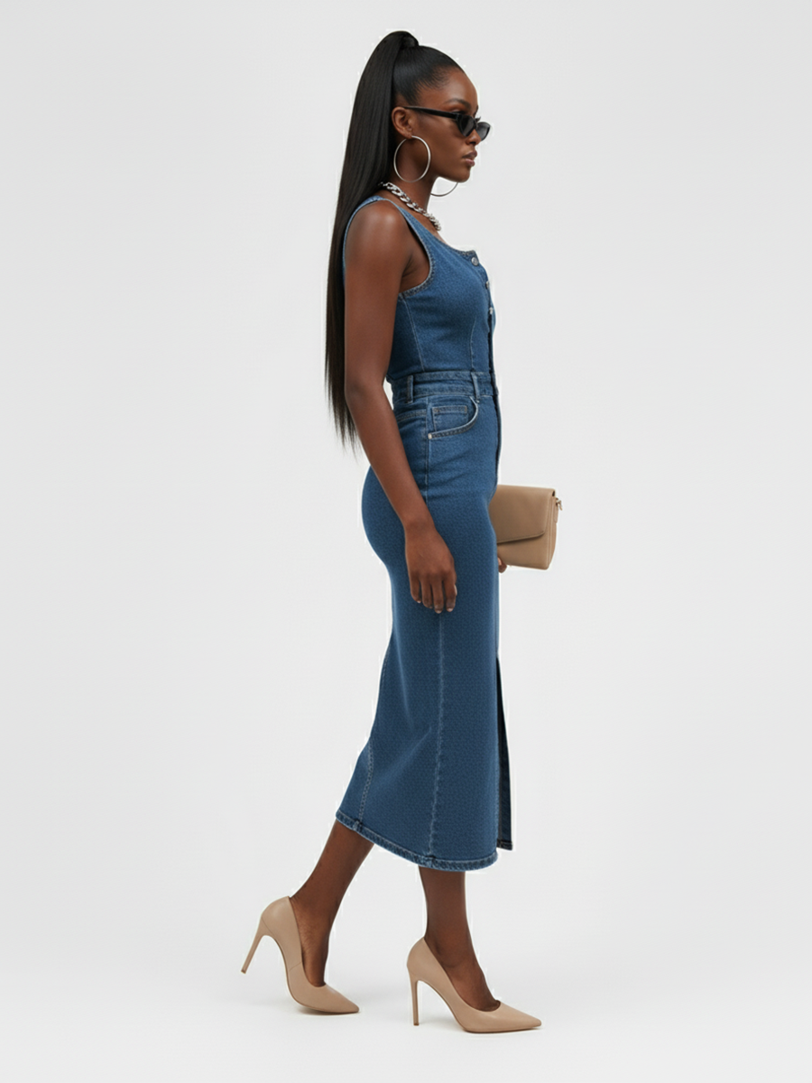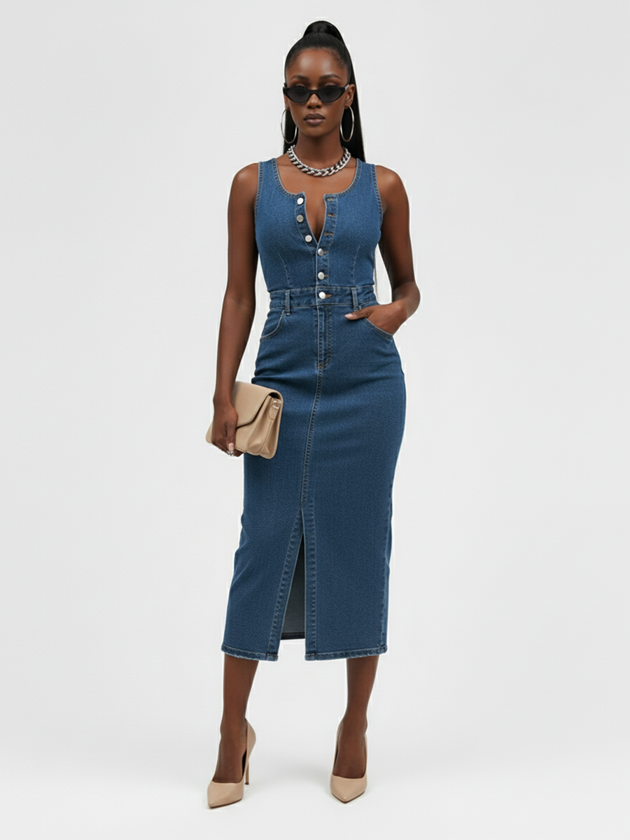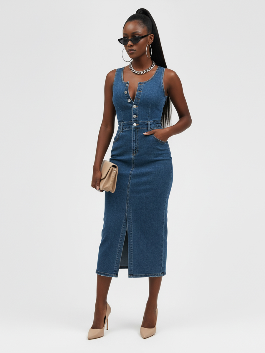 Представляем вам идеальное летнее платье — женское джинсовое платье сарафан на железных кнопках, которое станет настоящим хитом вашего гардероба! Это облегающее платье без рукавов прекрасно подчеркивает фигуру и дарит свободу движений в жаркие дни. Идеальная длина миди делает его универсальным выбором как для прогулок по городу, так и для вечерних выходов. Элегантный разрез спереди придаёт образу нотки сексуальности и стиля. Джинсовое платье с вырезом легко комбинируется с различными аксессуарами, позволяя вам создавать неповторимые образы. Новинка, которая покорит сердца покупателей со всего мира. Облегающий крой подчеркивает достоинства фигуры. Широкий размерный ряд с XS-XXL , при заказе партии от 500шт возможность изготовления под вашим брендом.