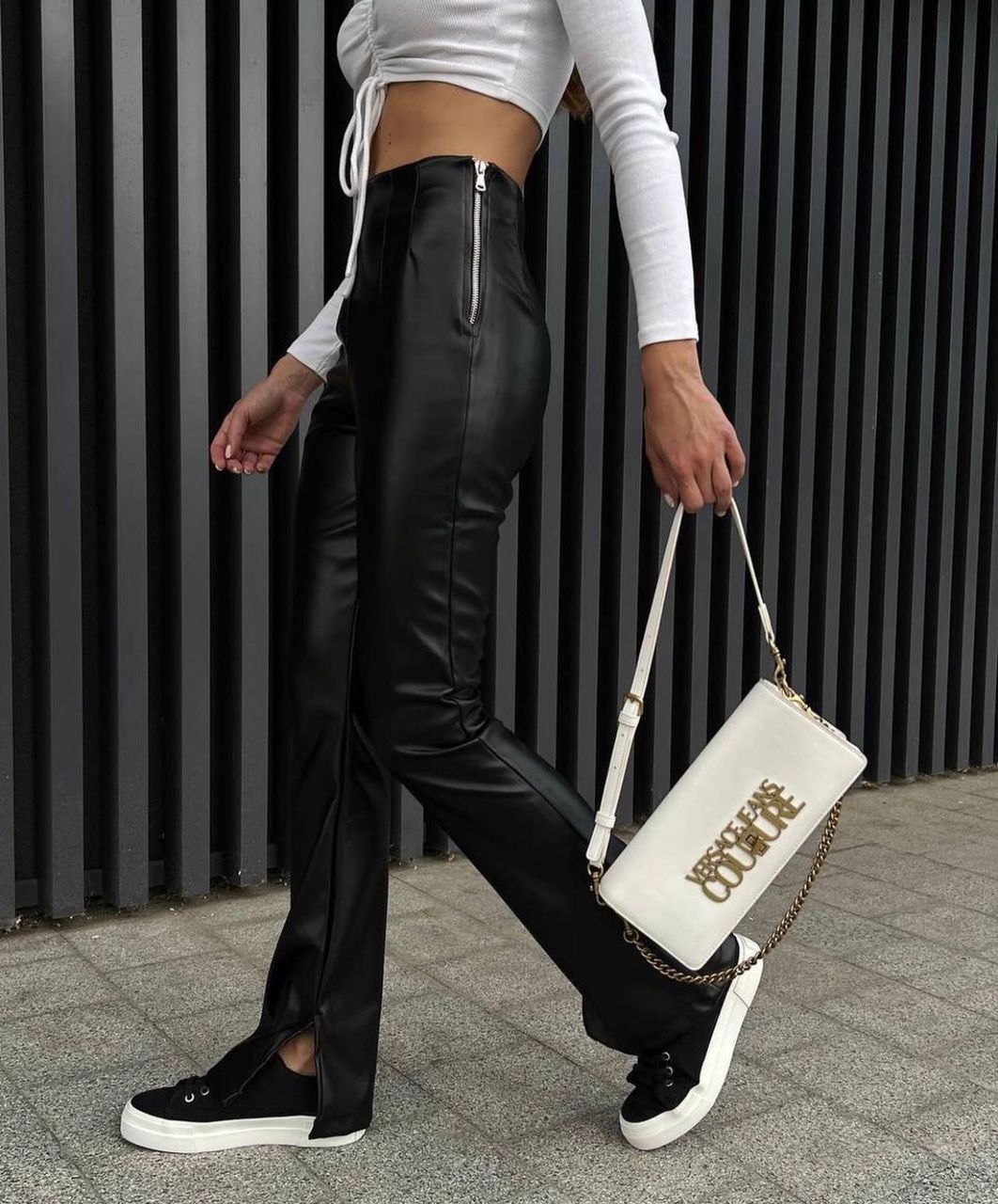 Шикарные брючки из матовой эко кожи с разрезом