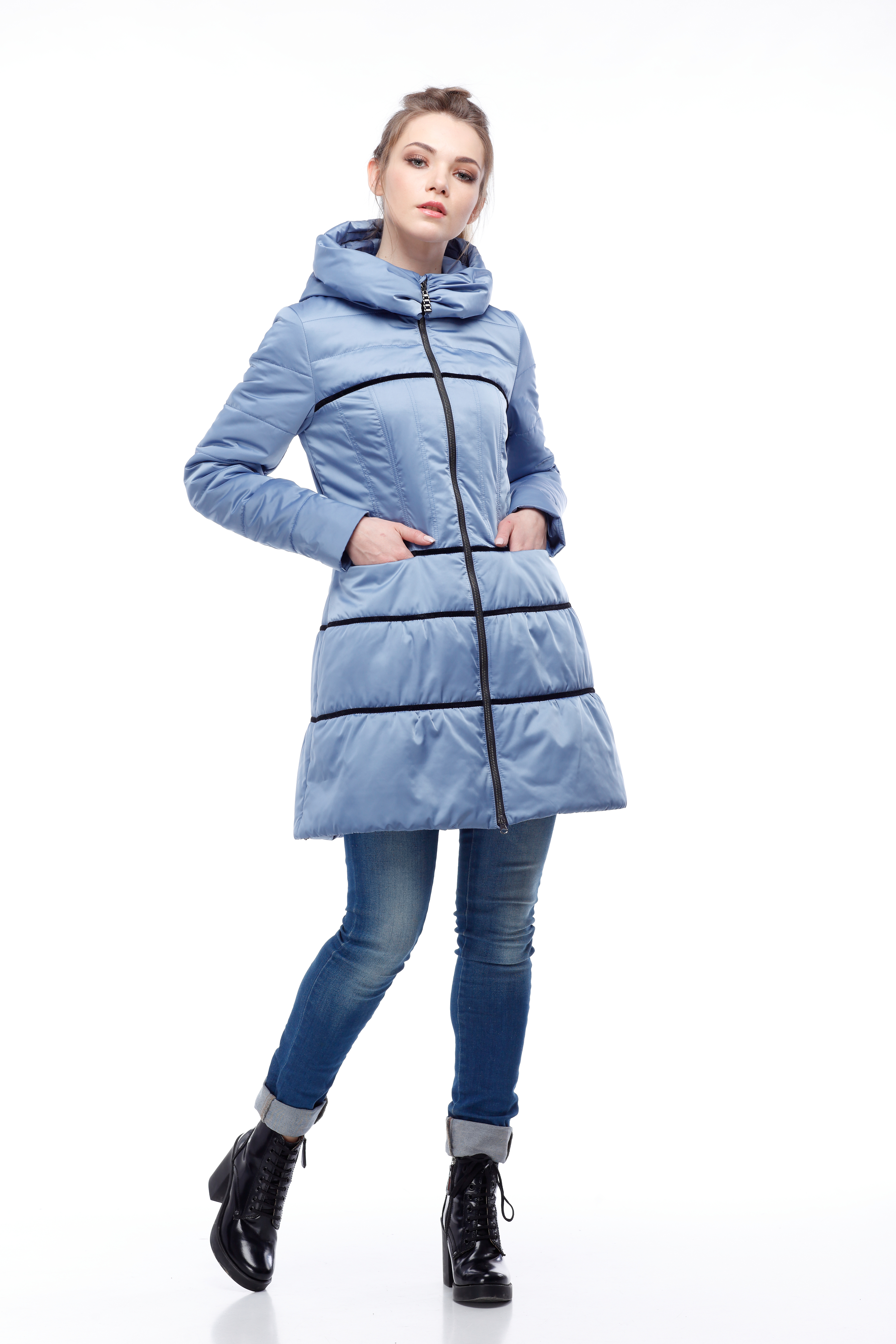 Стеганое пальто Василиса подойдет для создания образа современной принцессы. Максимальный комфорт в движении сочетается с легкостью и воздушностью. Детали: Интересная молодежная модель приталенного силуэта с переходом от талии в расклешенную юбочку, декорированную бархатной тесьмой. Карманы на молнии скрыты в шов. Объемный воротник-стойка, переходящий в капюшон. Модель представлена в нескольких вариантах ткани и модных в этом сезоне цветах. Застежка: открытая молния с ветровиком Длина изделия 86 см, длина рукава 64 см Ткань: плащевка (атлас) Подкладка: плащевка Цвета: голубой лед, зеленый Размерный ряд: 42-48