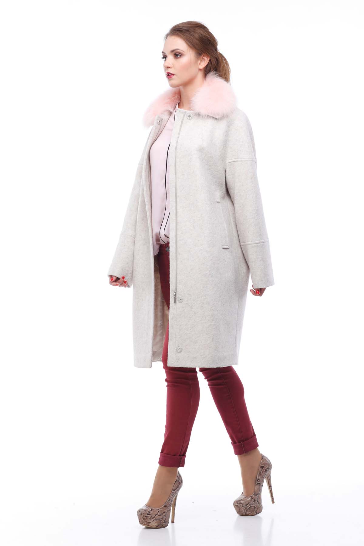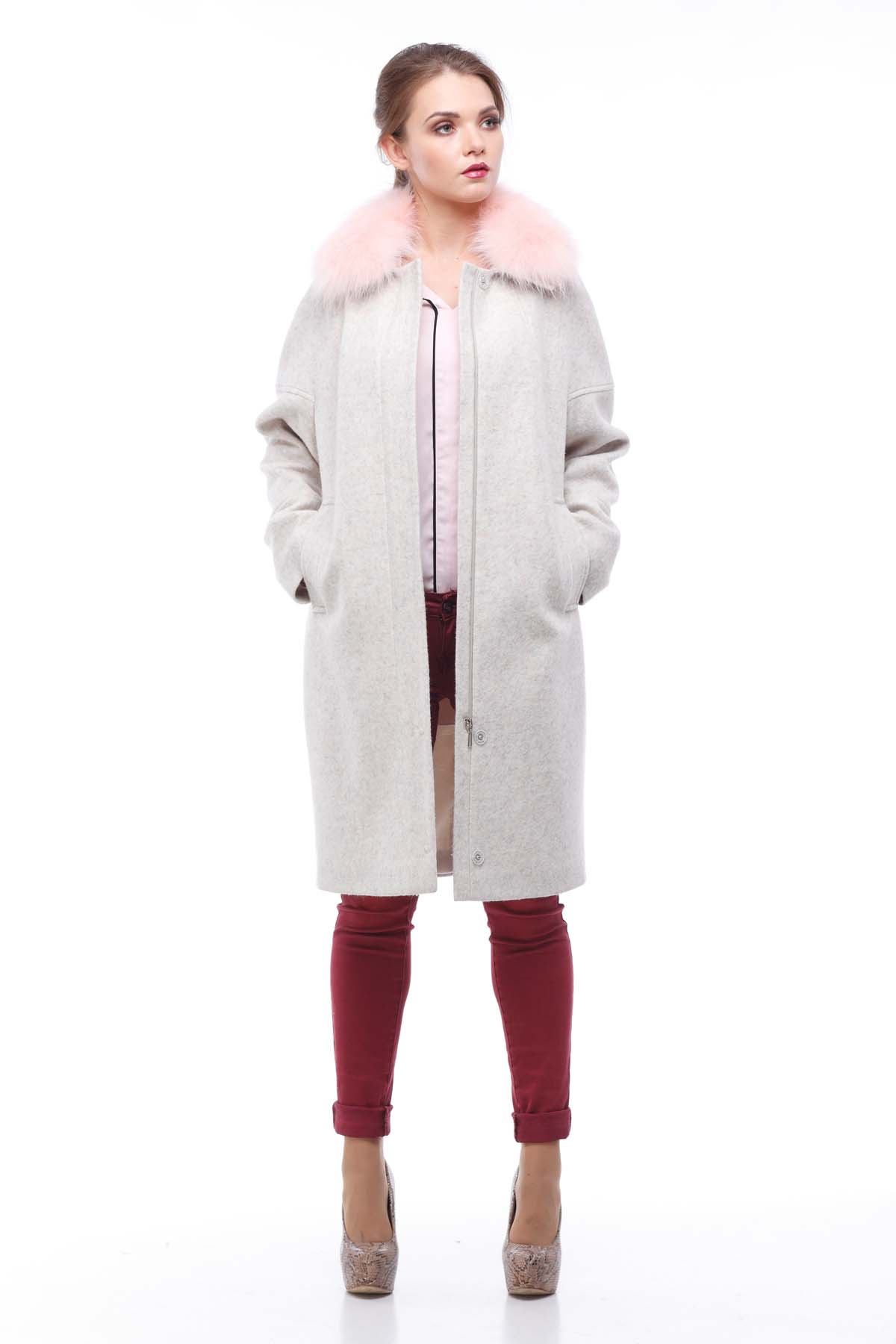 Пальто Доменика с отделкой из натурального меха чернобурки покорило множество сердец самых изысканных красавиц. Детали: Силуэт слегка расширенный . Длина до середины колена. Покрой рукава цельновыкроенный , больше напоминающий реглан, с поперечными рельефами в верхней и нижней частях рукава. Воротник отложной с застежкой доверху. Застёжка на скрытые пришивные кнопки. Карманы прорезные с листочками. В зимнем варианте съемный меховой воротник, утеплитель шерстепон Длина изделия: 100 см Ткань: шерсть Италия Цвета: зефирный, светло-серый, синий джинс Размерный ряд: 42-52