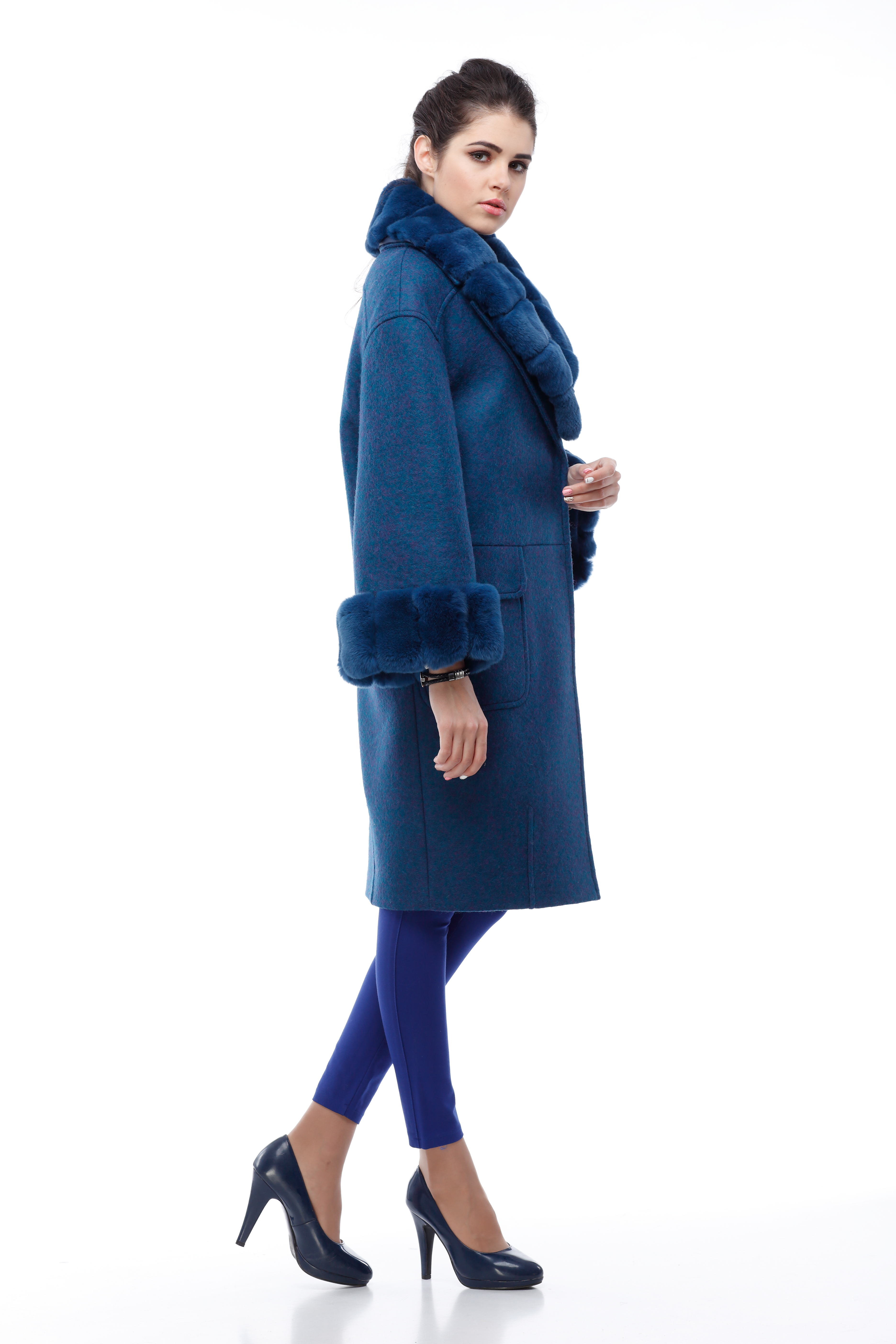 Пальто Монро подчеркнет женственные черты своей обладательницы, а меховые манжеты и воротник предоставят надежную защиту от низких температур и холодного ветра. Детали: Силуэт «овал», объем » оверсайз». Покрой рукава- рубашечный с удлинённой линией плеча, расширенный к низу. С кокетками по полочкам и спинке. По полочкам поперечные рельефы чуть ниже линии талии. Накладные карманы с клапанами, втачными в рельефы полочек. Застёжка скрытая на пришивные кнопки. Воротник — широкая шаль. По низу полочек и спинке застрочены вытачки , создающие силуэт » овал». Съемные меховые манжеты и воротник. Длина изделия: 99 см Ткань: шерсть Италия +мех кролик Rex Утеплитель: шерстепон Цвета: изумруд, светло-серый Размерный ряд: 42-50