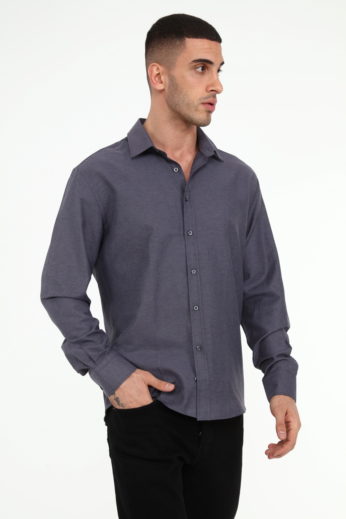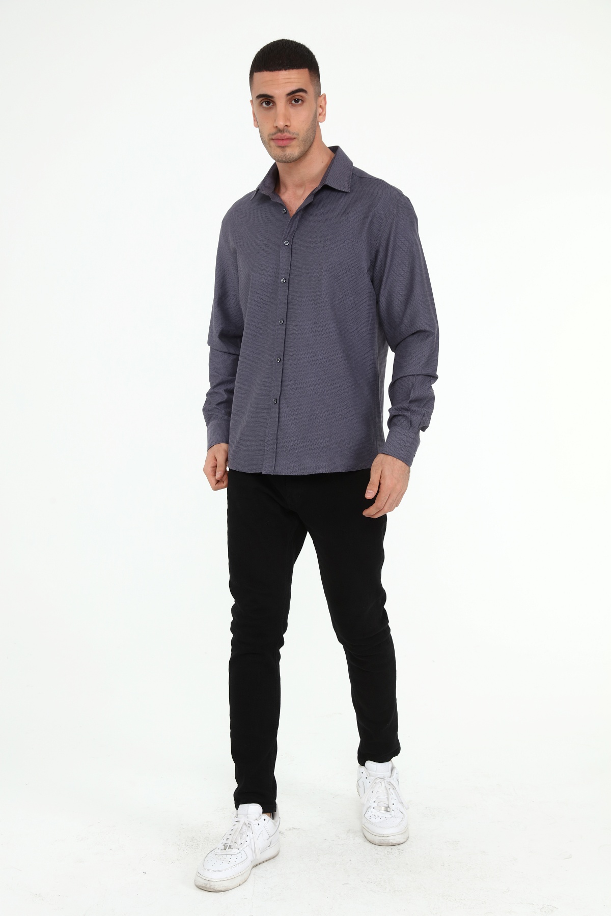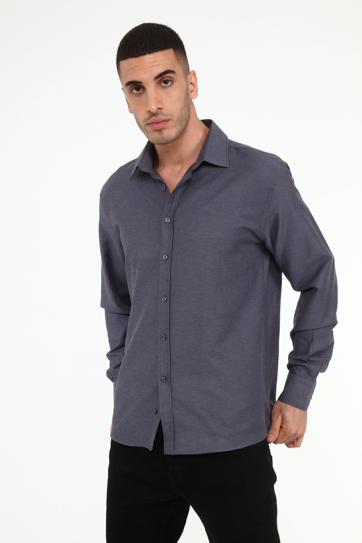 Код рубашки: SH1106 Покрой: Slim Fit Тип воротника: Без пуговиц Тип кармана: Без кармана Тип рукава: Длинный рукав Материал: 70% хлопок 30% полиэстер Жаккард Сезон: лето Инструкции по стирке: температура воды при машинной стирке не должна превышать 30 градусов. Гладить следует при низкой температуре. Нельзя добавлять отбеливатель.