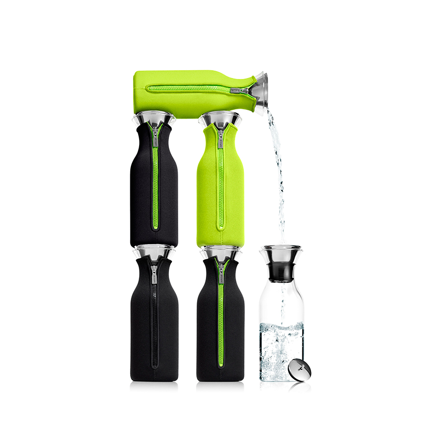 Код товара: 567950Цвет: черныйОсновной материал: боросиликатное стекло, нержавеющая сталь, неопренДетали: Подходит для воды, сока или чая, который можно заваривать прямо в графине. Идеален для лимонадов или травяных чаев. Неопреновый чехол обеспечивает термоизоляцию и сохранит напиток горячим или холодным по желанию. Удобно хранить на полочке в дверце холодильника, размер подходит для большинства моделей. Материалы: закаленное стекло, нержавеющая сталь, каучук, неопрен. Главная особенность графина — инновационная технология Drip-free (“ни капли мимо”). Двойное горлышко позволяет гарантировать, что ни одна капля напитка не прольётся мимо. Металлическая крышка графина имеет силиконовый фильтр, который не даст кусочкам лимона или мяты попасть в стакан, а также она сама отодвигается, когда вы наклоняете бутылку. Стеклянные и металлические части можно мыть в посудомоечной машине.