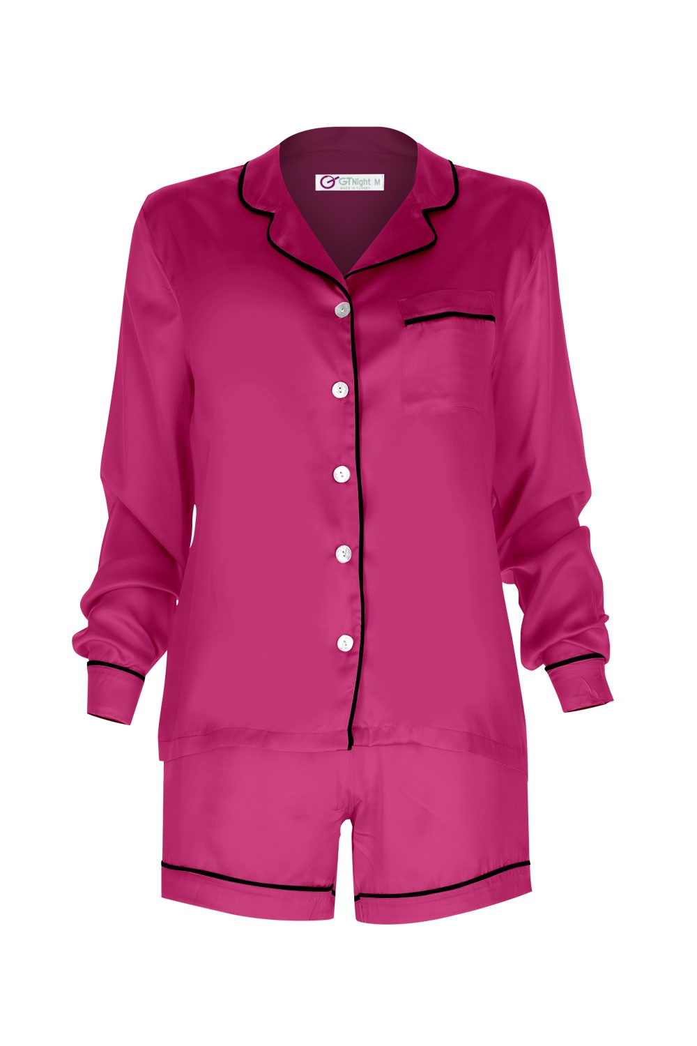 %100 İPEK BİYELİ UZUN KOLLU ÜST - ŞORT PİJAMA TAKIM - 80 MOMME BEDENLER  XS-S-M-L-XL