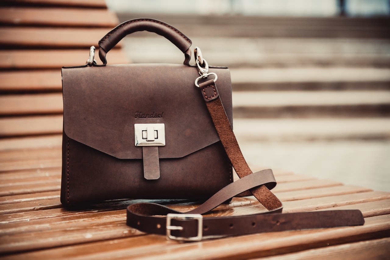 Сумка кожаная на застёжке с плечевым ремнём - 34006