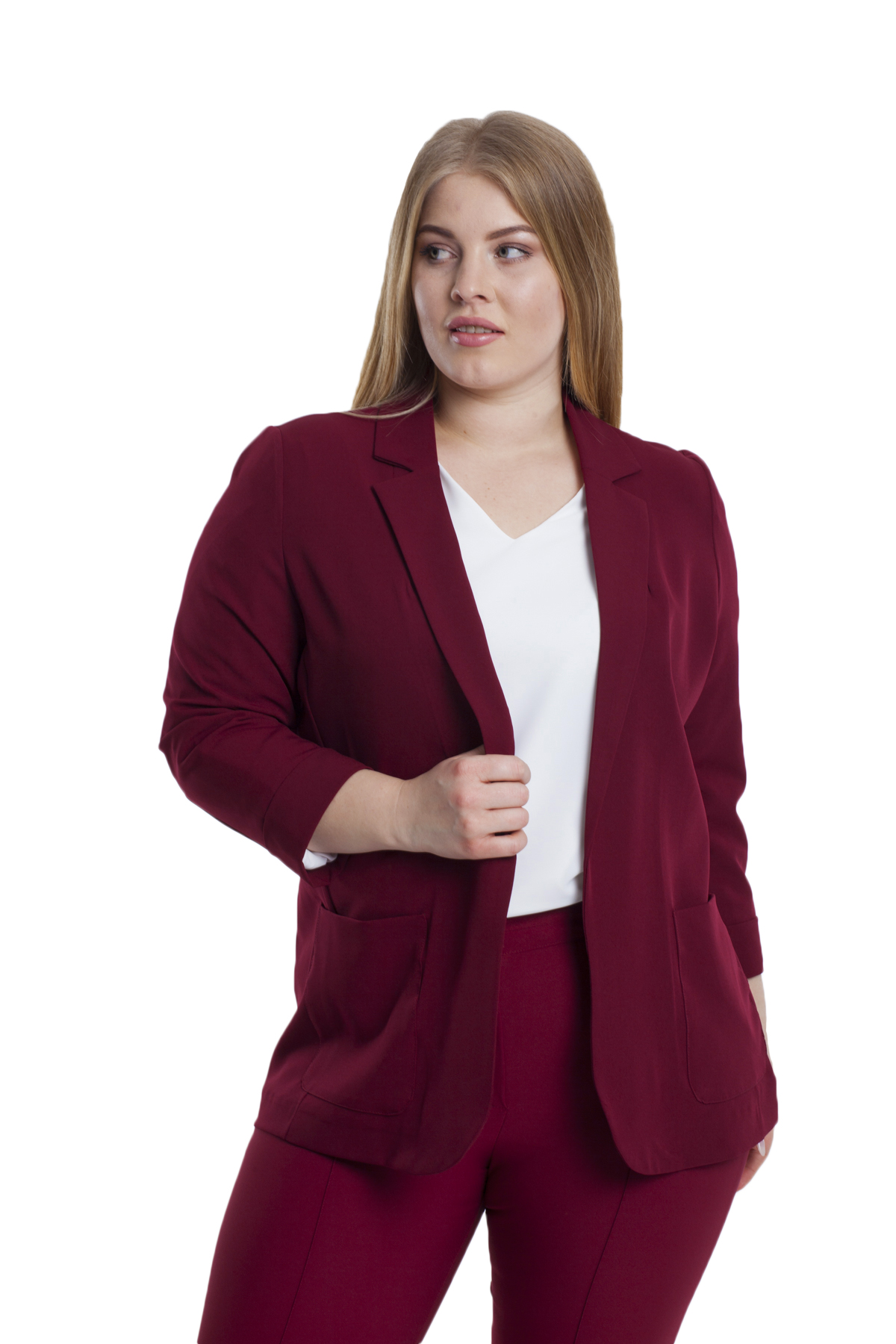 Плюс Размер - Карманный Детальный Пиджак