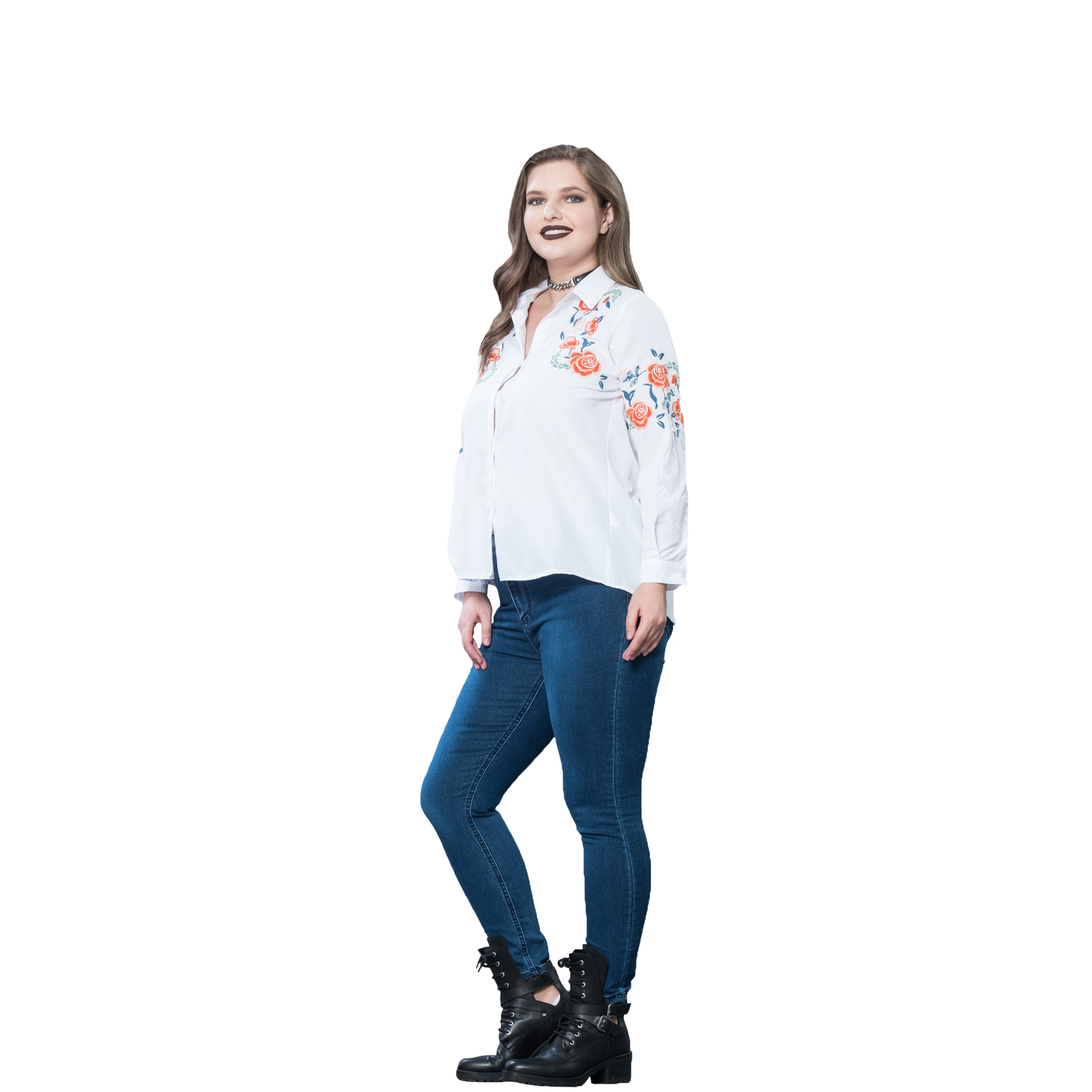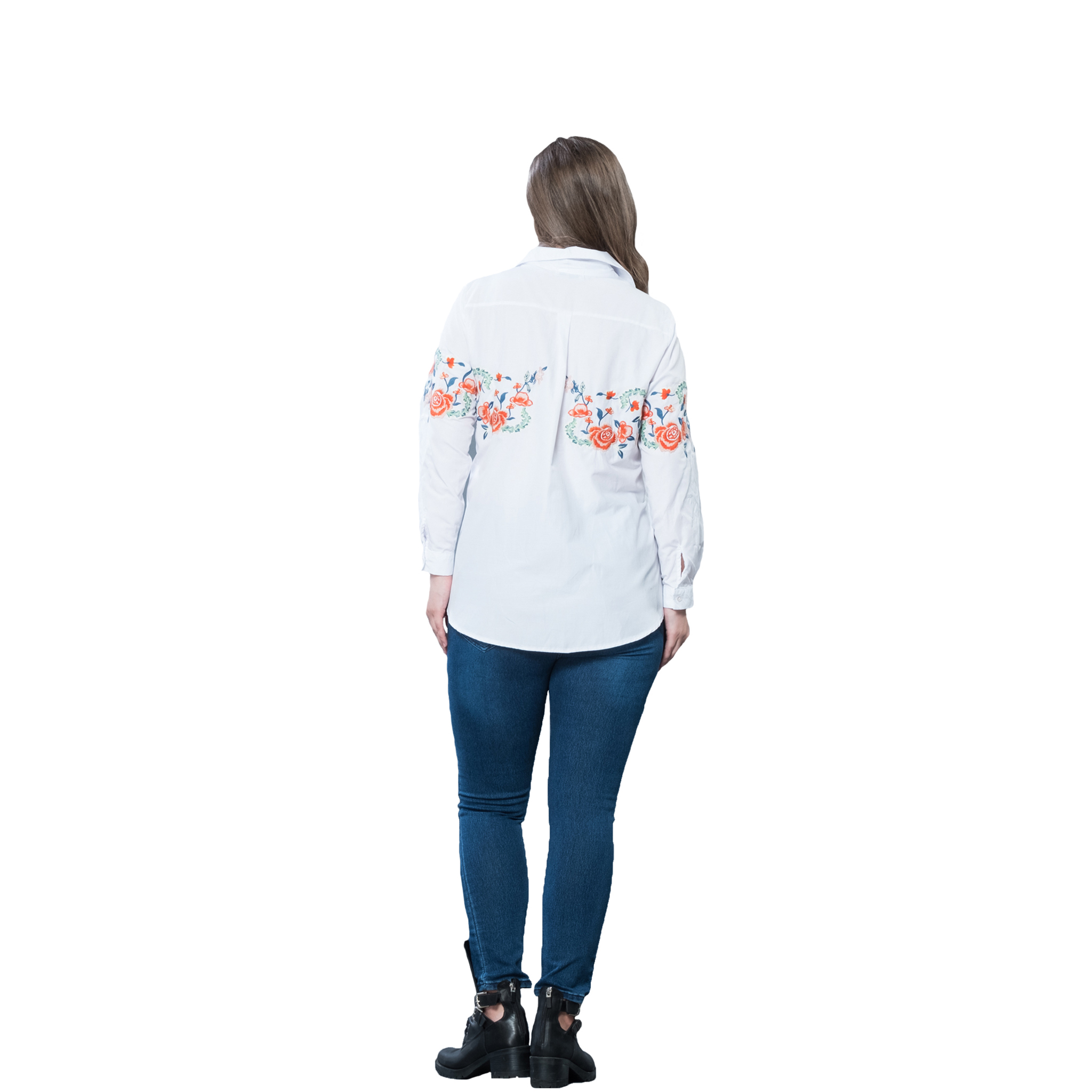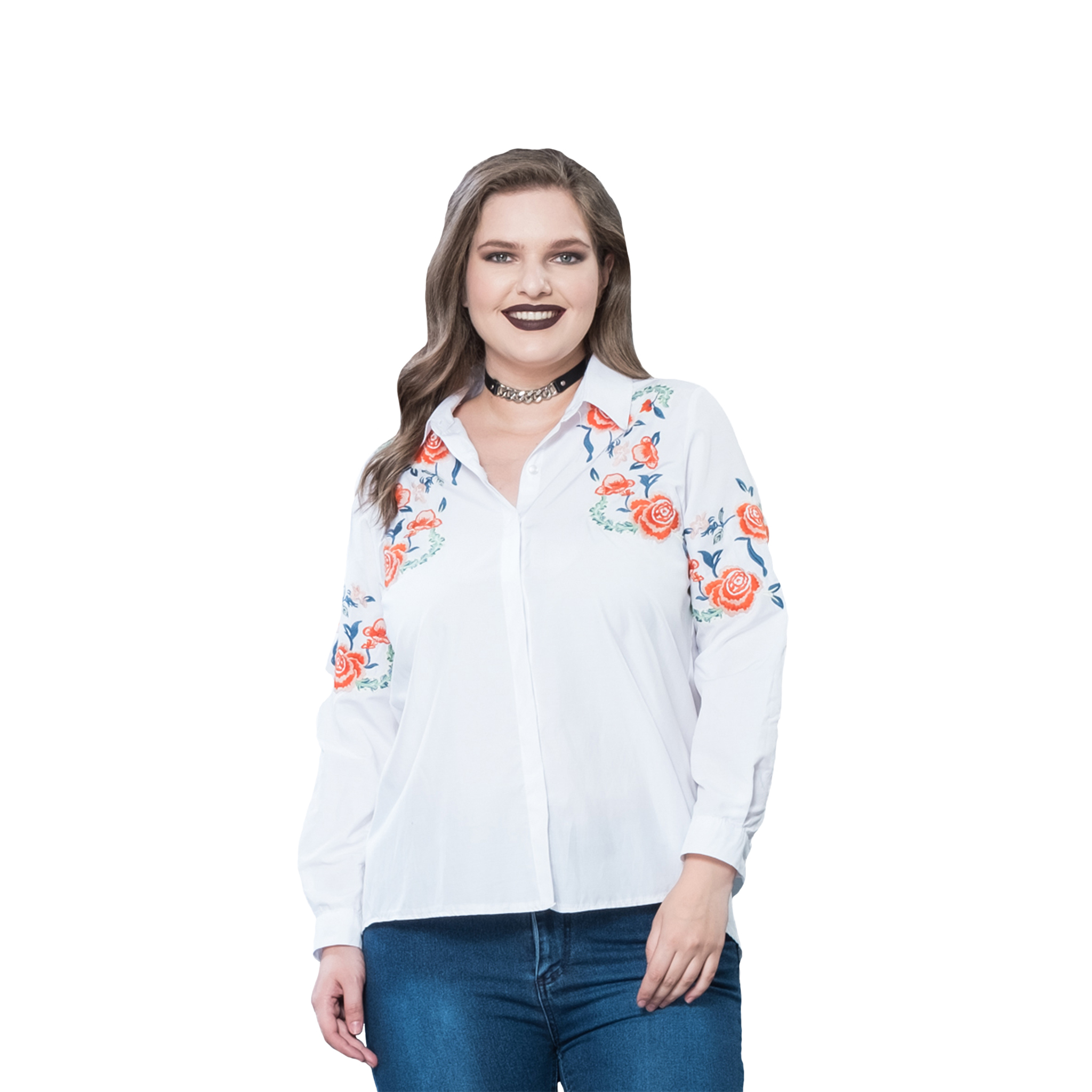 Büyük Beden Nakışlı Cotton Gömlek