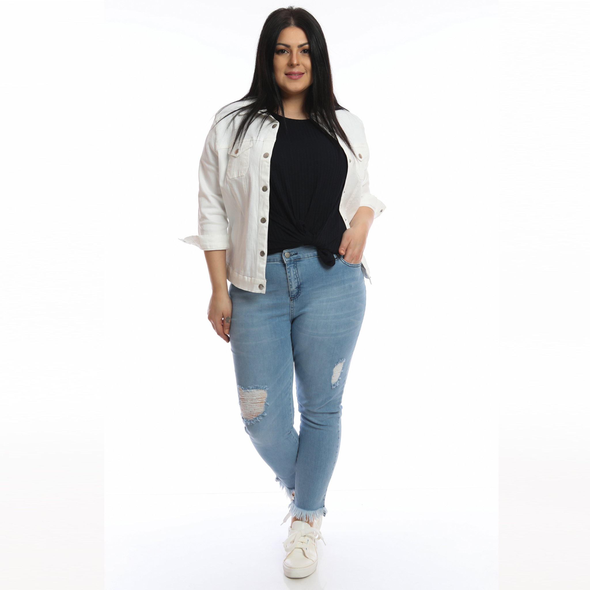 Büyük Beden Paça Püsküllü Kot Pantolon - 42053
