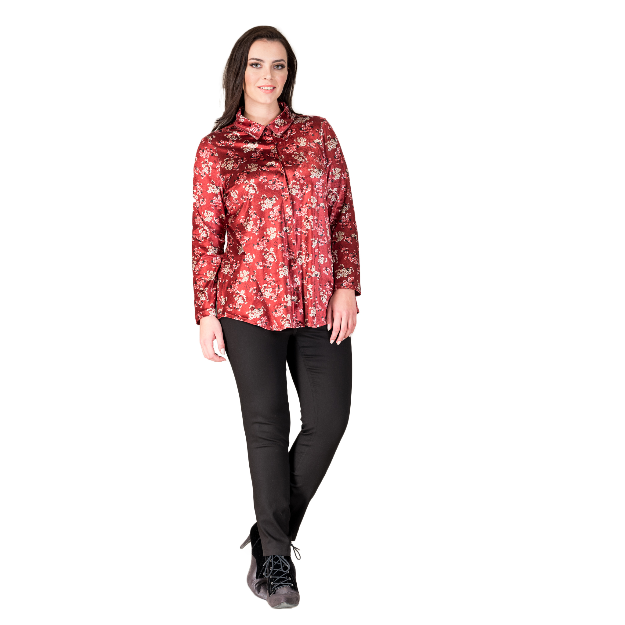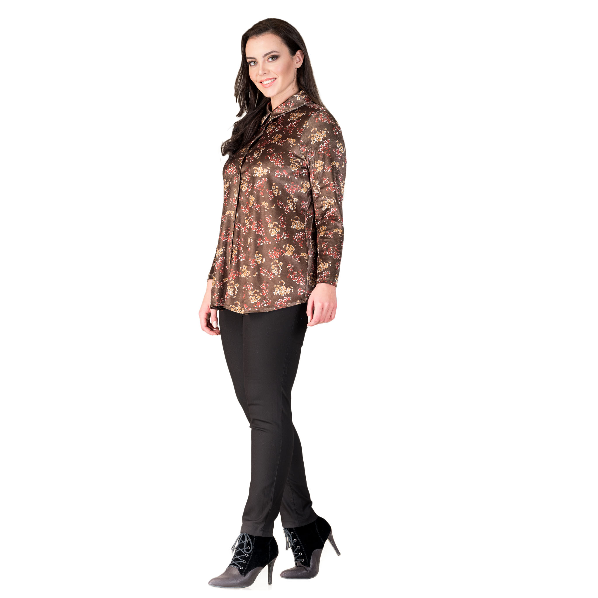 Desenli Kadife Gömlek - 42157