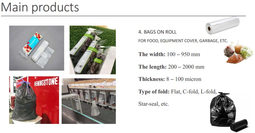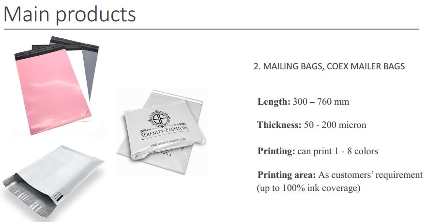 АО "Ханпак", созданное во Вьетнаме, специализируется на производстве пластиковых пакетов на заказ для экспорта во все страны мира. Наши основные продукты включают в себя: мешок для мусора (мешки с лентой, мешки с S-образной ручкой, c-образные мешки, мешки со звездообразным уплотнением), плоский мешок, мешок в рулоне, мешок для футболки, мешок с головкой блока, почтовый мешок, стретч-пленку, Роскошная сумка (высечка, патч-ручка, мягкая петля с блочным дном или картон (если есть)), сумка на молнии и т. Д. Вся производственная и коммерческая деятельность Hanpak основана на философии бизнеса «Ваше доверие, наш успех». Hanpak гордится тем, что является одним из престижных производителей пластиковых пакетов на заказ во Вьетнаме по поставкам пластиковой упаковки. Hanpak стремится к совершенству в мельчайших деталях, создавая прочную основу для мощного, устойчивого и высоко оцениваемого предприятия как внутри страны, так и за рубежом.