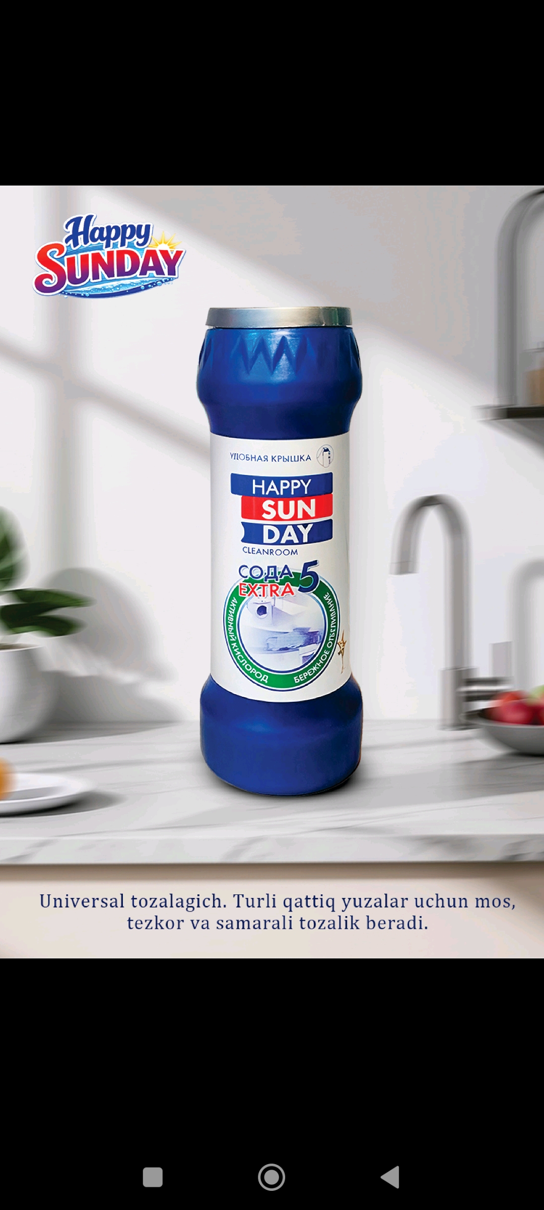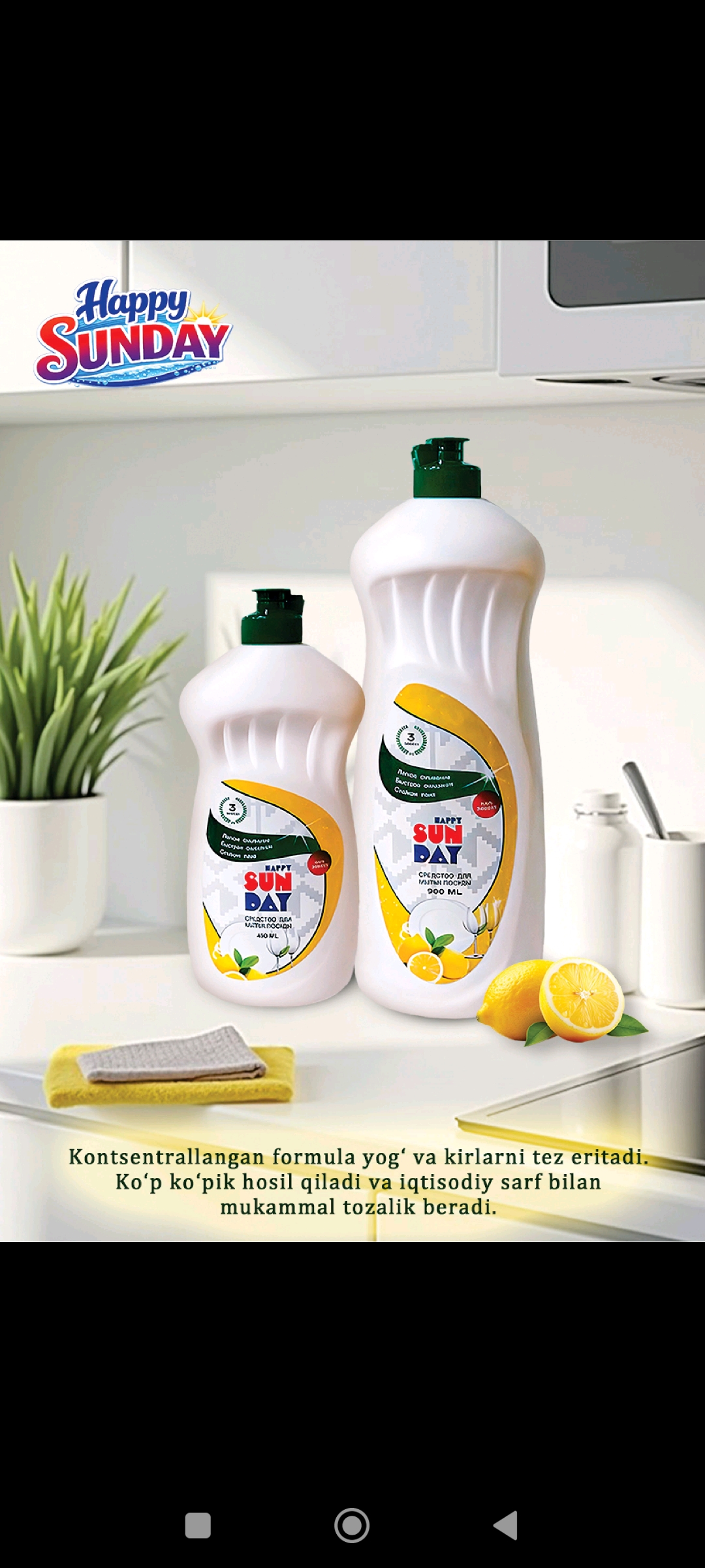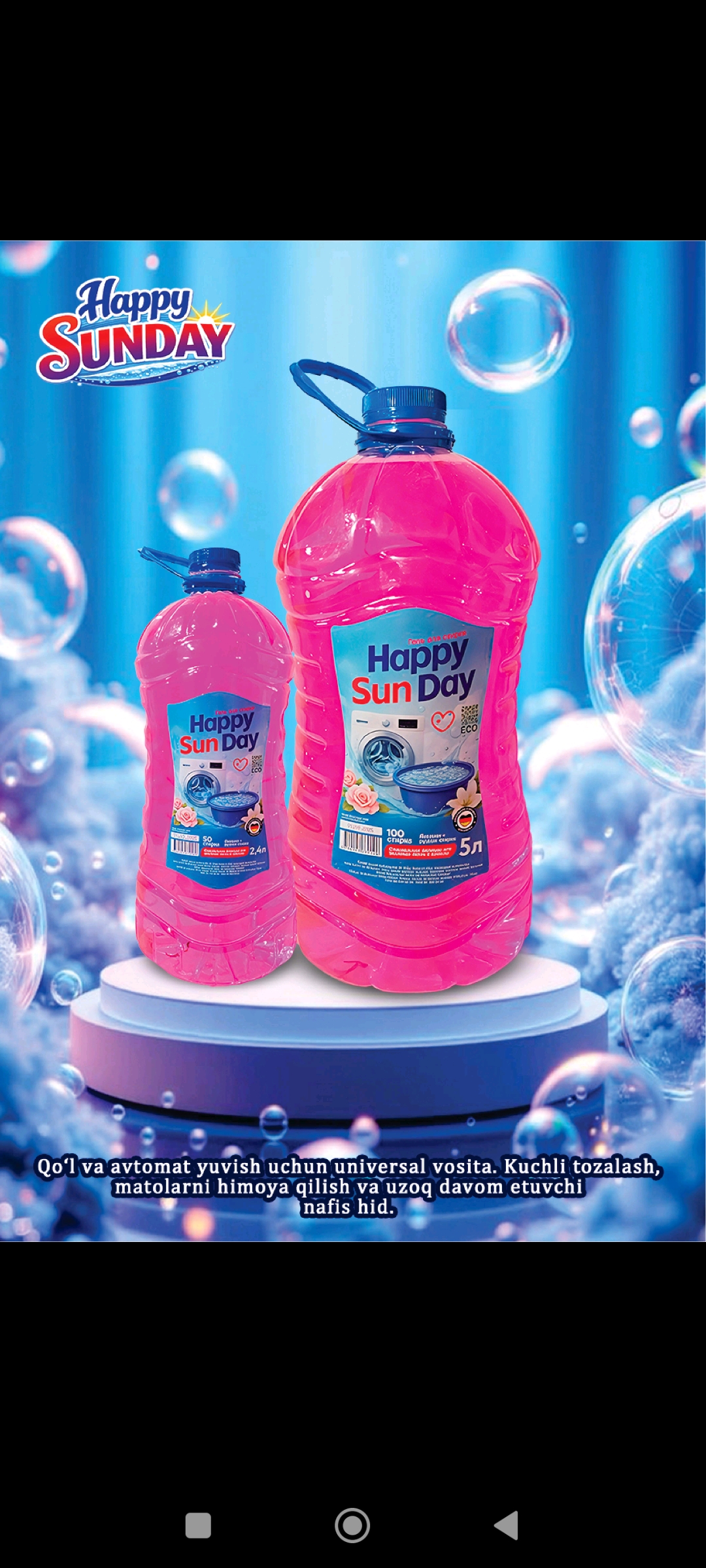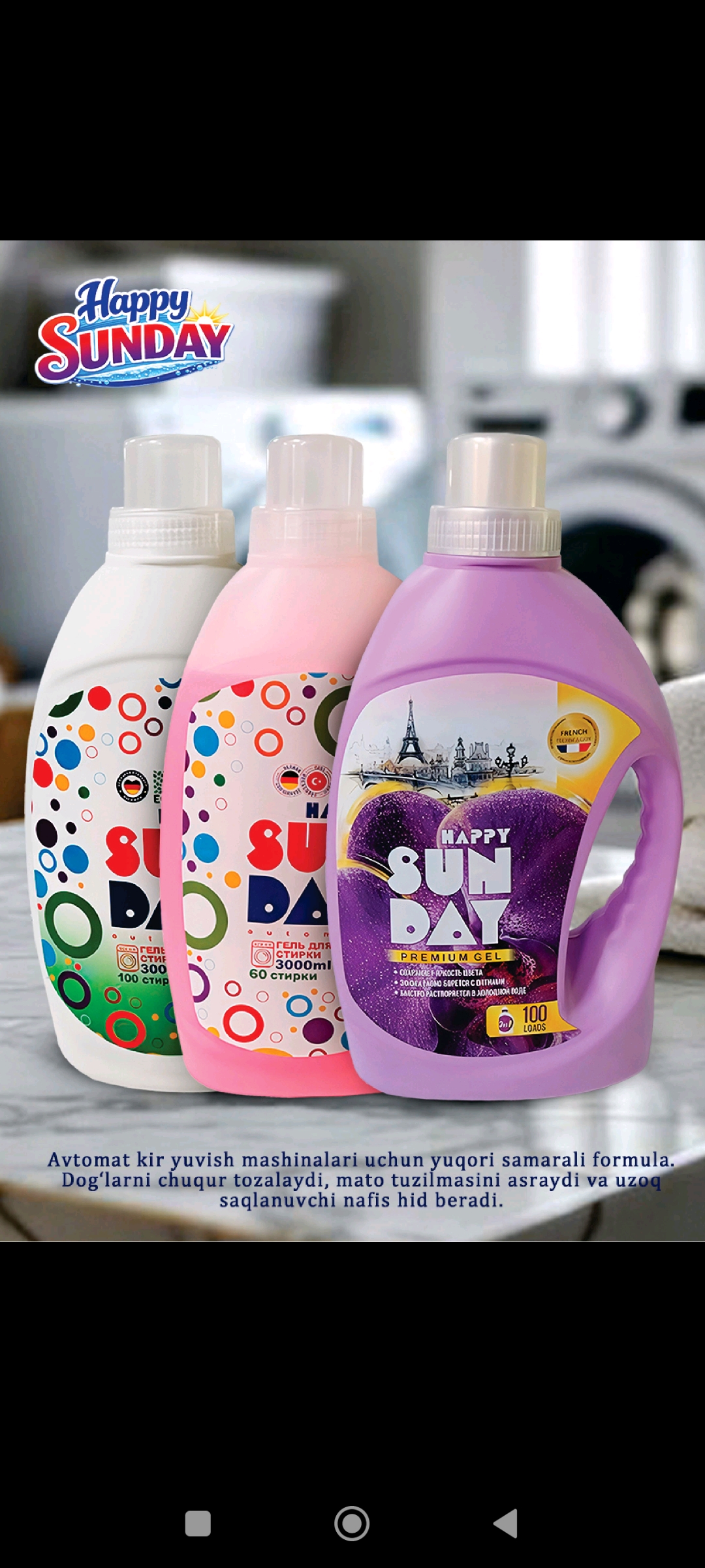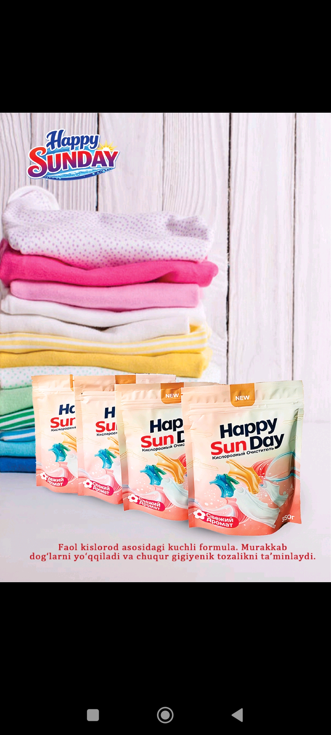 Happy Sunday — современный бренд бытовой химии, предлагающий широкий ассортимент эффективных и качественных средств для дома. Наша продукция разработана с учетом современных требований к чистоте, безопасности и удобству использования. В линейке Happy Sunday представлены: стиральные порошки автомат и ручной стирки жидкие гели для стирки средства для мытья посуды антижир и средства для кухни антизасор для труб универсальные чистящие средства смягчители и кондиционеры для белья Наши стиральные средства эффективно удаляют сложные пятна, сохраняют цвет и структуру ткани, придают свежий аромат и подходят для ежедневного использования. Средства для кухни и посуды легко справляются с жиром и загрязнениями, обеспечивая идеальную чистоту. Happy Sunday — это: ✔ высокое качество ✔ доступная цена ✔ широкий ассортимент ✔ современные формулы ✔ надежный результат Мы ориентированы на оптовых покупателей и дистрибьюторов из стран Центральной Азии и других регионов. Гарантируем стабильные поставки и выгодные условия сотрудничества.
