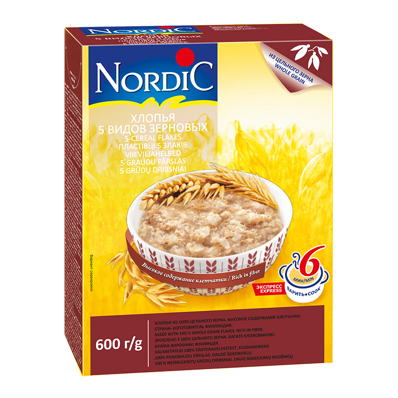 Описание продукта Хлопья для каши 5 видов зерновых — вкусный продукт для всей семьи! Уникальная технология производства хлопьев позволяет сохранить полезные свойства цельного зерна. Продукт не содержит консервантов, ароматизаторов и красителей. Состав Хлопья из цельного зерна (ржаные, овсяные, пшеничные, ячменные, гречневые).