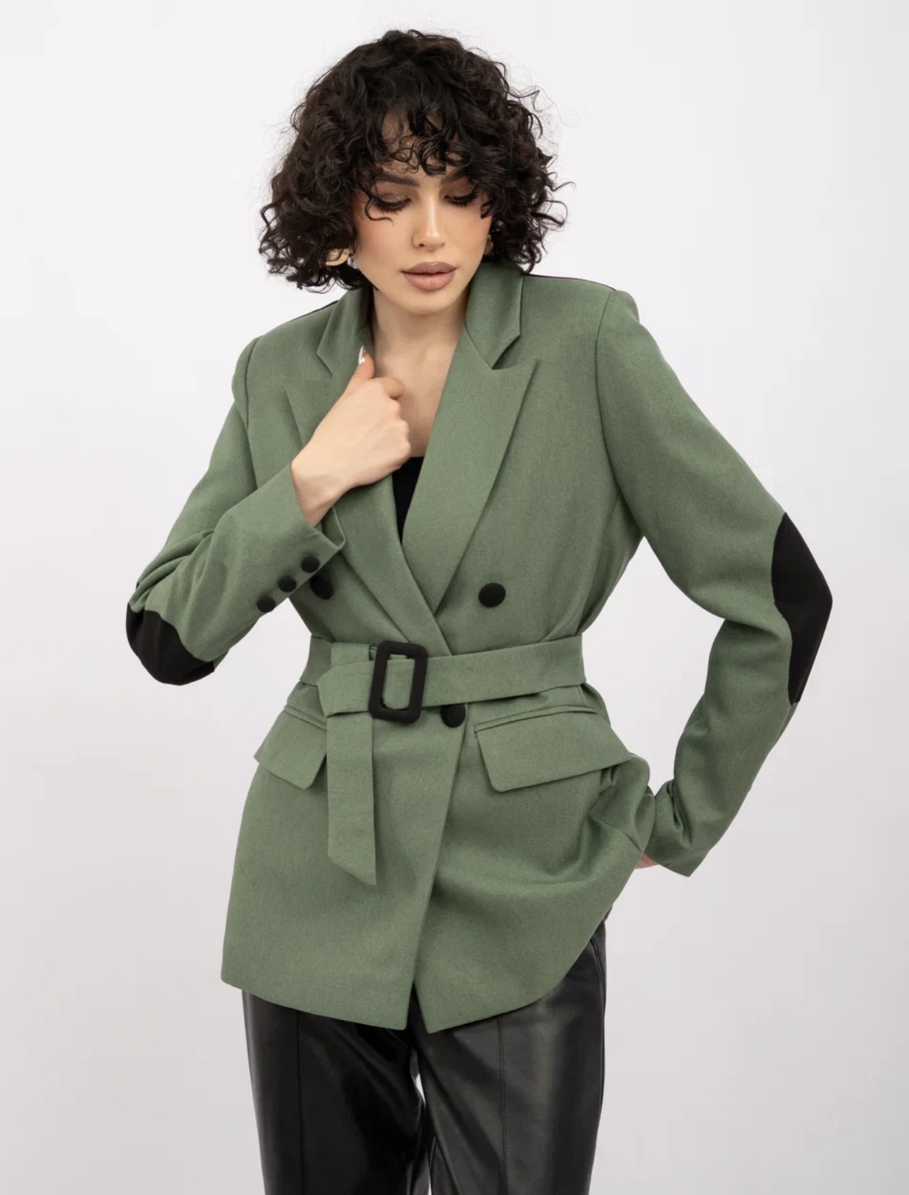 Стильный комбинированный пиджак с поясом-незаменимый элемент гардероба для женщин.Есть вставки на локтях,высококачественная ткань Состав:Хлопок 10%, вискоза 20%, полиэстер 70% Цвета:кофе,зеленый,бежевый,черный Размеры:S,M,l,XL,2xl,3xl